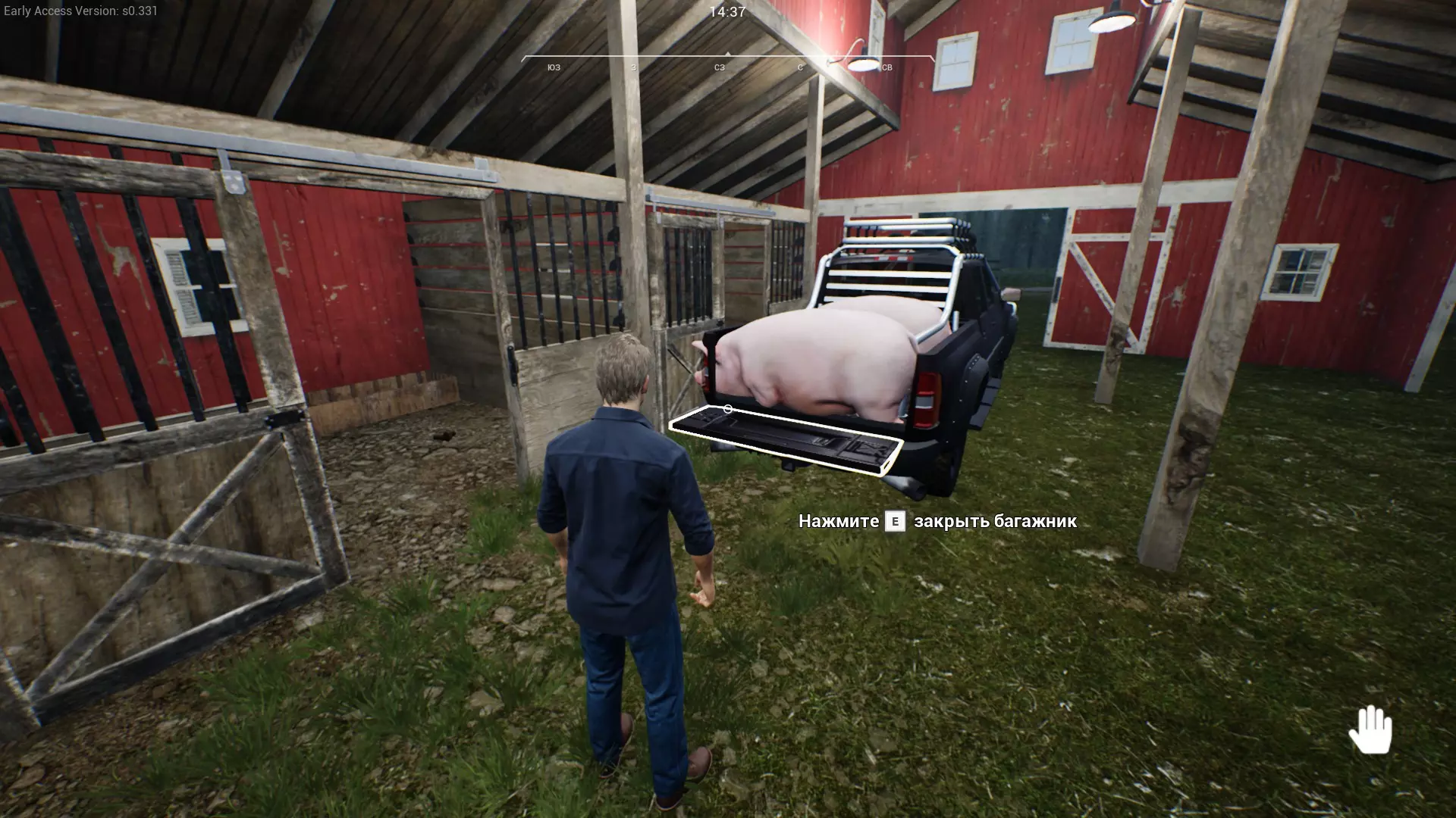 卡住的猪 游戏中有个小bug/特性——当你的猪长胖后,就无法通过门框了。直接在谷仓里分割猪可能会导致“猪到处乱跑,还得去追”的情况。 不过这个问题有解决办法! 我们需要一辆能开进谷仓的UTV/皮卡车。