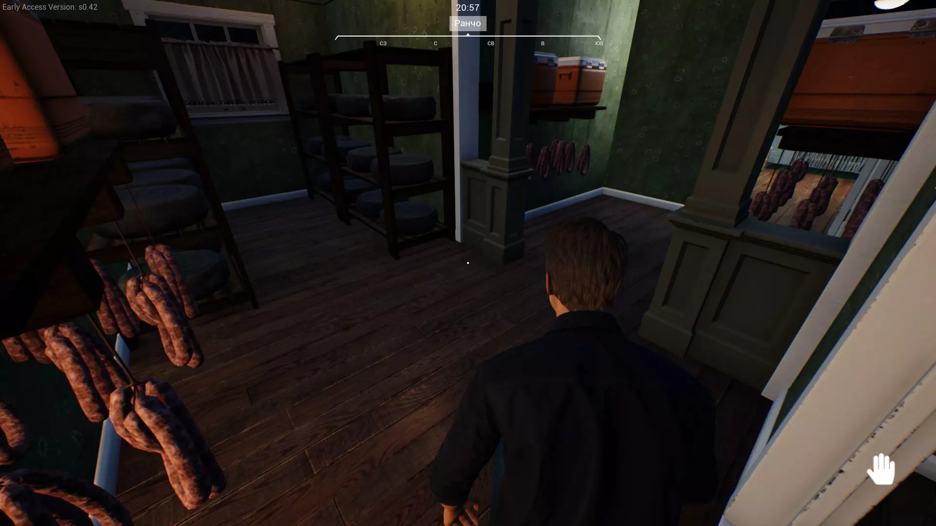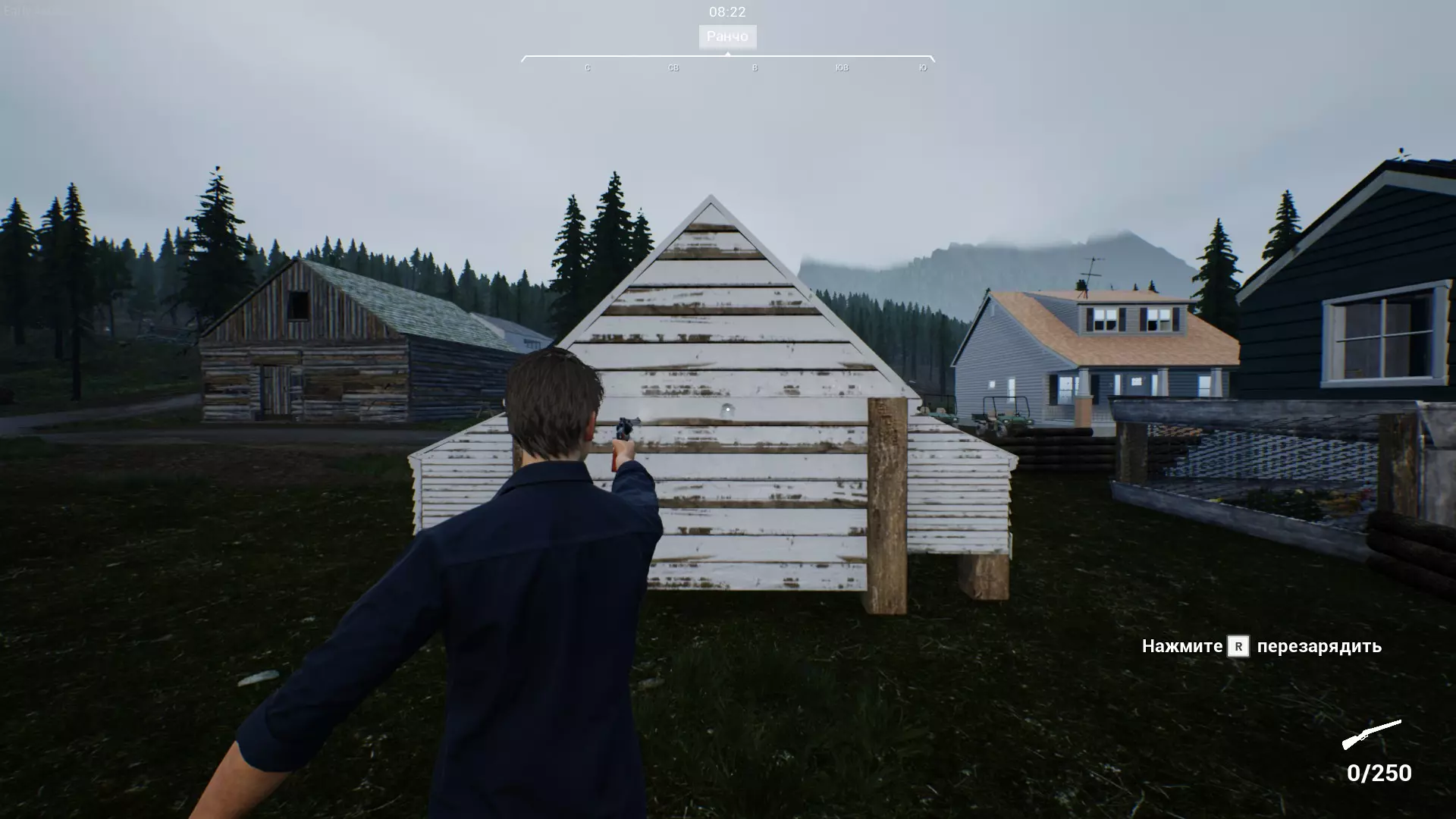 因此,在游戏初期,养猪和狩猎是最赚钱的活动。 射击/狩猎 目前游戏中只有六发左轮手枪可用。左轮手枪的子弹可以在商店购买。 左轮手枪只能使用瞄准镜(鼠标中键)进行射击。