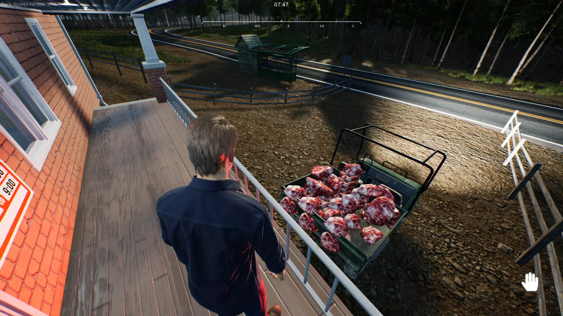 首先,你需要给谷仓建造一个储粮设施。这将为你自动填充谷仓内的所有饲料槽和饮水器。然后前往商店,卖掉游戏初期获得的两只鸡。现在对你来说,积累资金更为重要。 购买两盒弹药,然后前往“建材商店”附近狩猎。向右转后,在前往建材商店的路上,你会进入熊的活动区域(地图上有标记)。