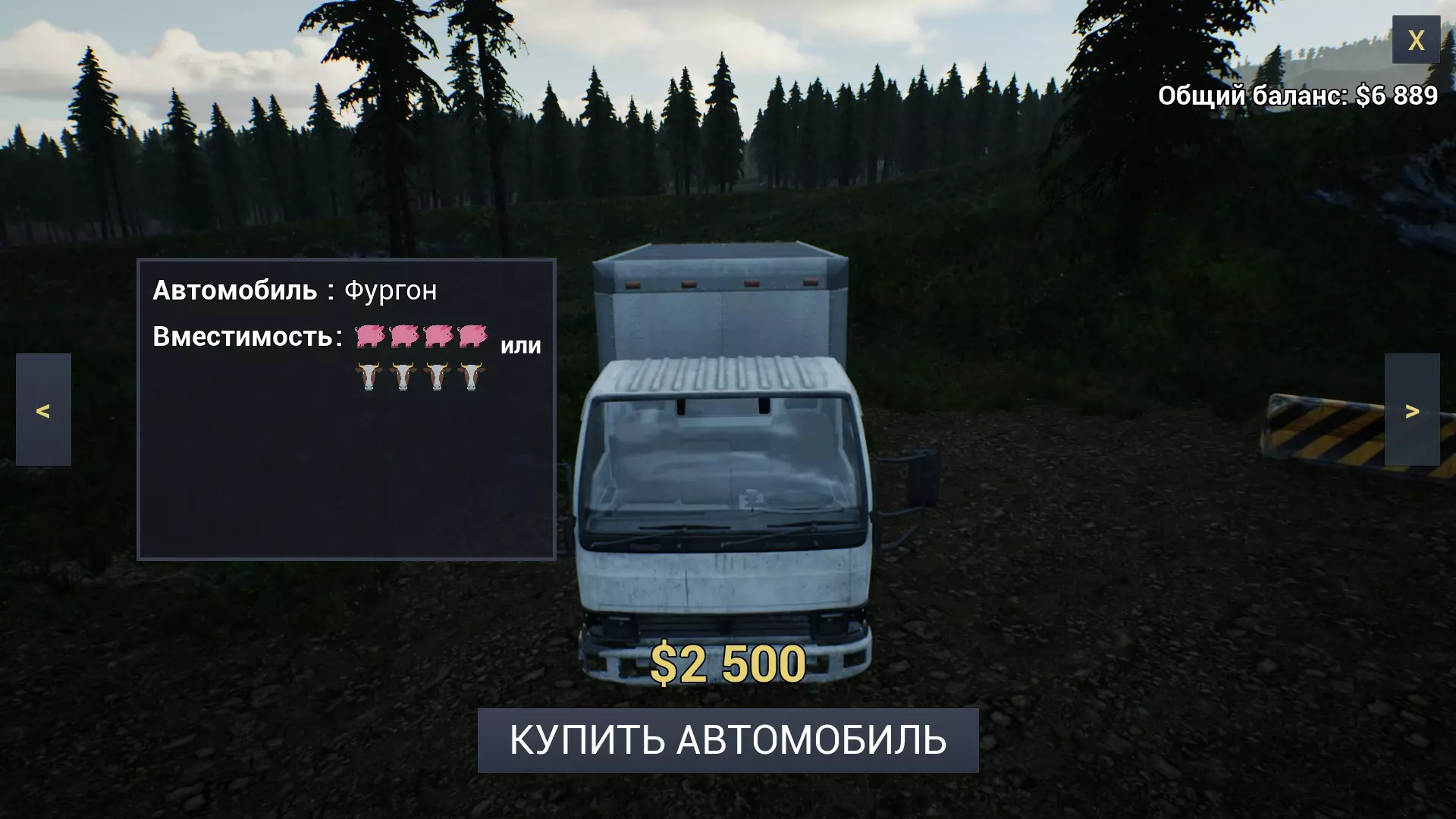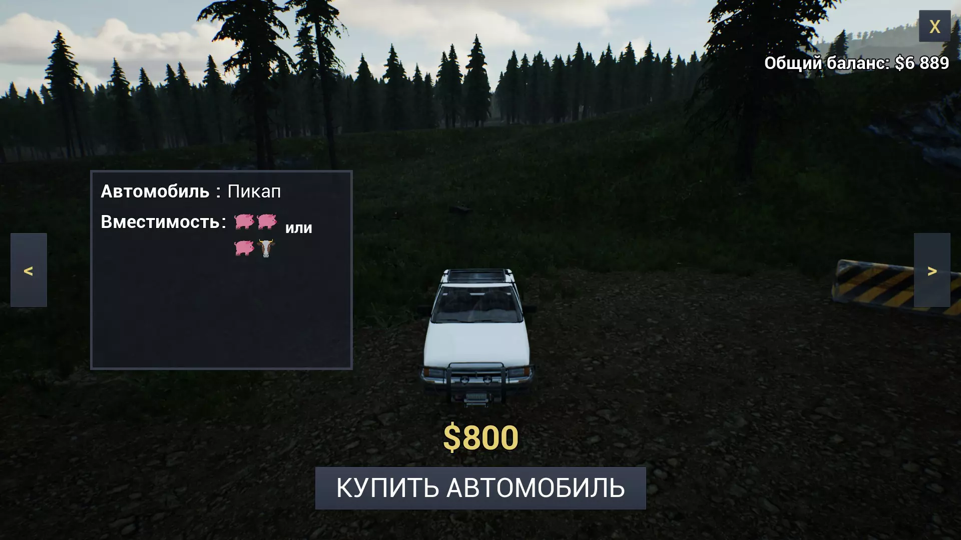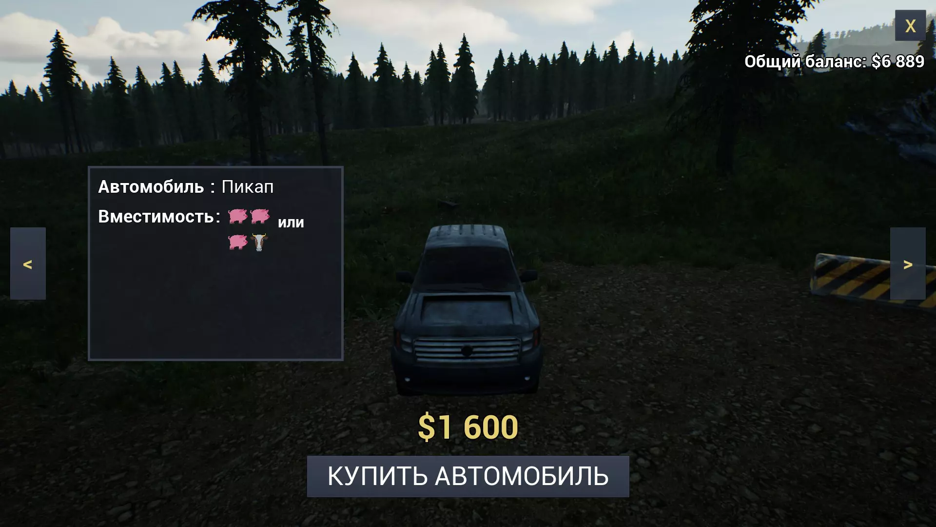 典型的美式皮卡,拥有宽敞的驾驶室和后备箱。可以且建议在车顶安装额外的行李架。能容纳两头猪或一头牛加一头猪,以及四名乘客。在游戏的任何阶段都是相当不错的选择;卡车