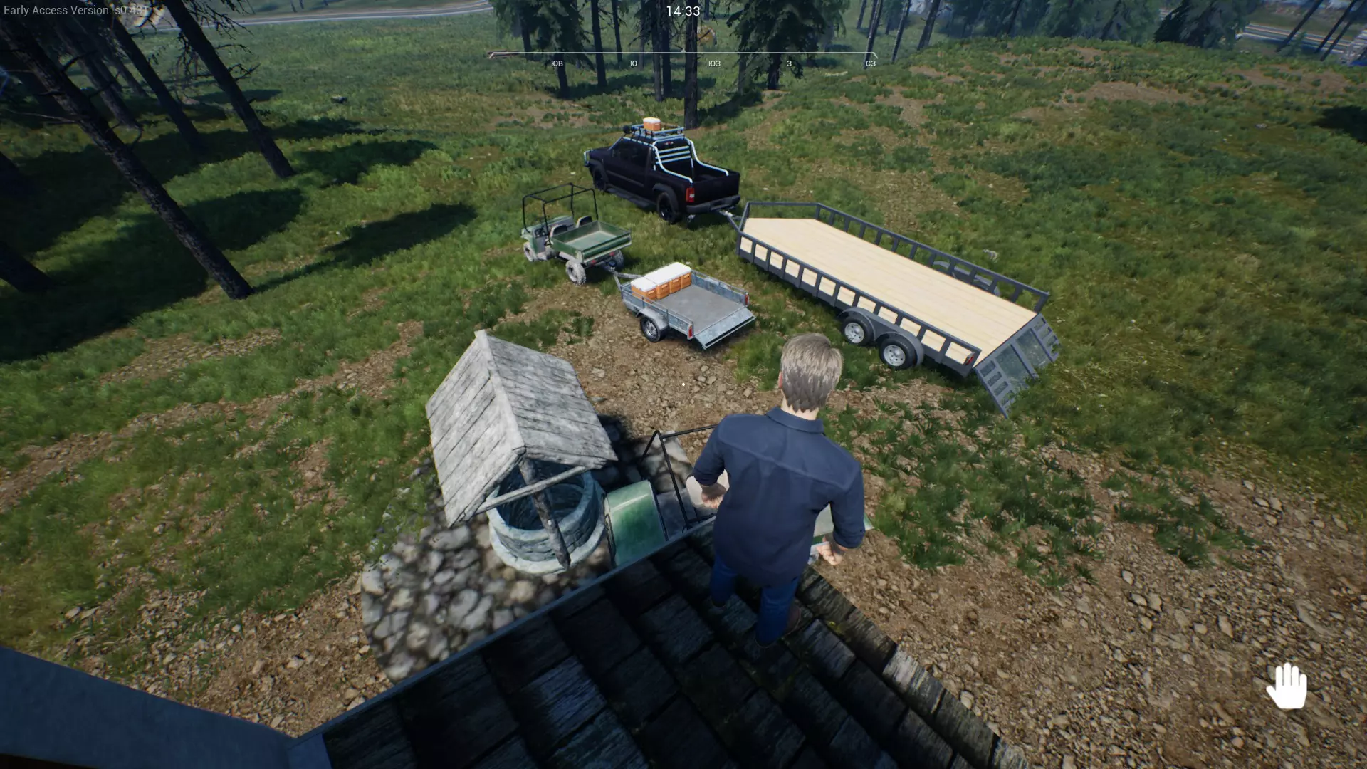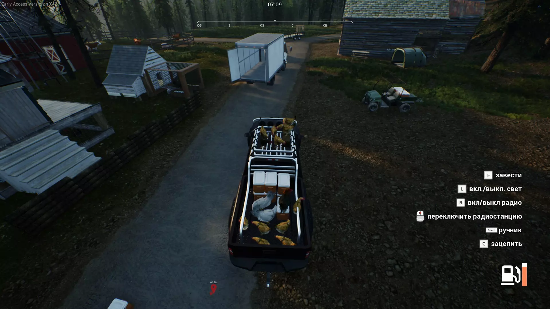 游戏开始 您好,农场主。 那么,您现在来到了已故祖父/叔叔/远房索马里亲戚的农场——这点需要强调。 您已经完成了新手任务,拥有两只鸡、一辆全地形车(UTV)、必要的工具套装,还有一把左轮手枪。您已经建造了第一个鸡舍、房屋和谷仓。