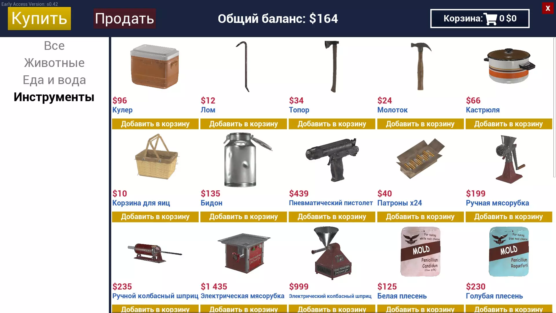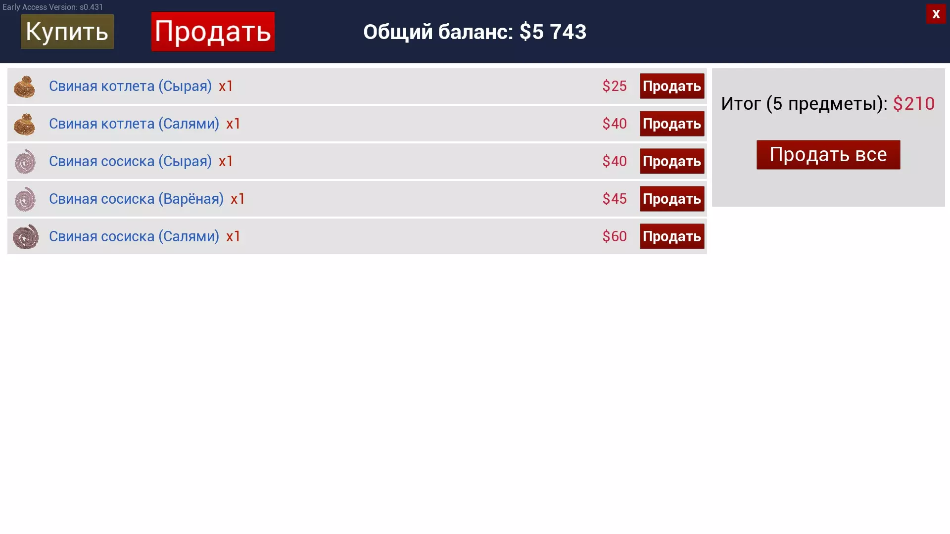 现在无需从汽车/拖车中卸下所有货物,只需将车辆停放在交易区域即可。可惜购买的货物不会自动装载到车里。 补充说明:所有示例都将使用商店中的价格,以便了解各类产品的保证金额。肉类制品 肉饼 制作肉饼我们需要: 绞肉机 锅 一块肉(鸡腿肉/猪肉/牛肉) 鸡蛋 将绞肉机放置在方便的位置,把锅安装在绞肉机上,放入肉并按下“启动”。