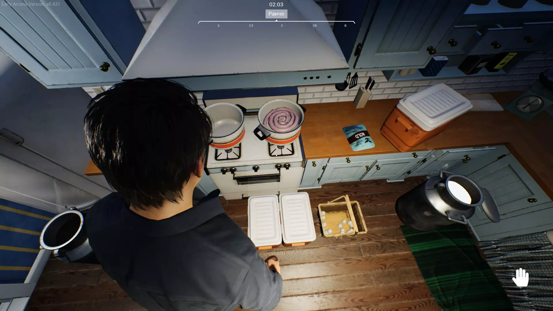 可以用牛奶制作凝乳,用凝乳可以制作奶酪!为此你需要锅、白色/蓝色霉菌和鸡蛋。把牛奶倒进锅里,先把锅放在炉子上,然后点击烹饪。几秒钟后我们就能得到凝乳,如果把凝乳放进干燥机里就能得到奶酪。更多详情请见【烹饪】板块) 【烹饪】 在最新更新中,开发者新增了使用农场获取的肉类和奶制品制作食品的功能。接下来将介绍相关内容以及这些食品的销售途径。