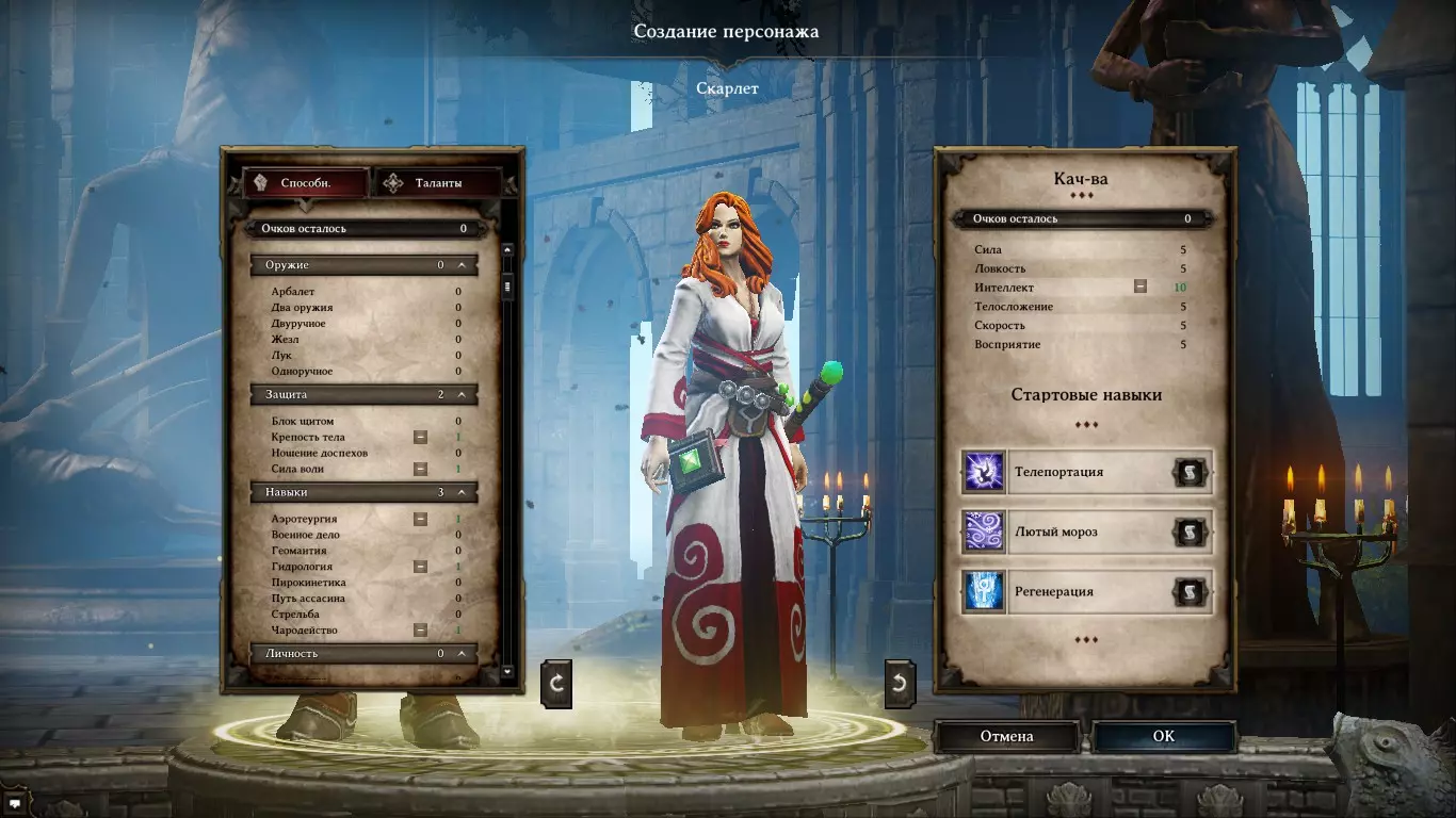 对于法师,我们将所有可用属性点都投入到智力上。 我来解释一下技能。 空气魔法是控制型队伍的首要重要学派。这里有很多眩晕技能、传送,还有能解除我们自身眩晕的技能。 水魔法是控制型队伍的第二个重要学派。这里有治疗、减速以及游戏后期的强力技能。法师职业从早期阶段就拥有强大的队友增益效果和令敌人极为难受的减益效果。 天赋: 【动物伙伴】:让我们能与整个瑞文戴尔的动物交流。除了趣味性外,还能通过任务获得大量经验值。 【长臂】:增加定向法术的射程。有时甚至能在战斗开始前就利用这个天赋对敌人释放技能。非常实用。初始技能选择:传送、极寒冰霜、再生