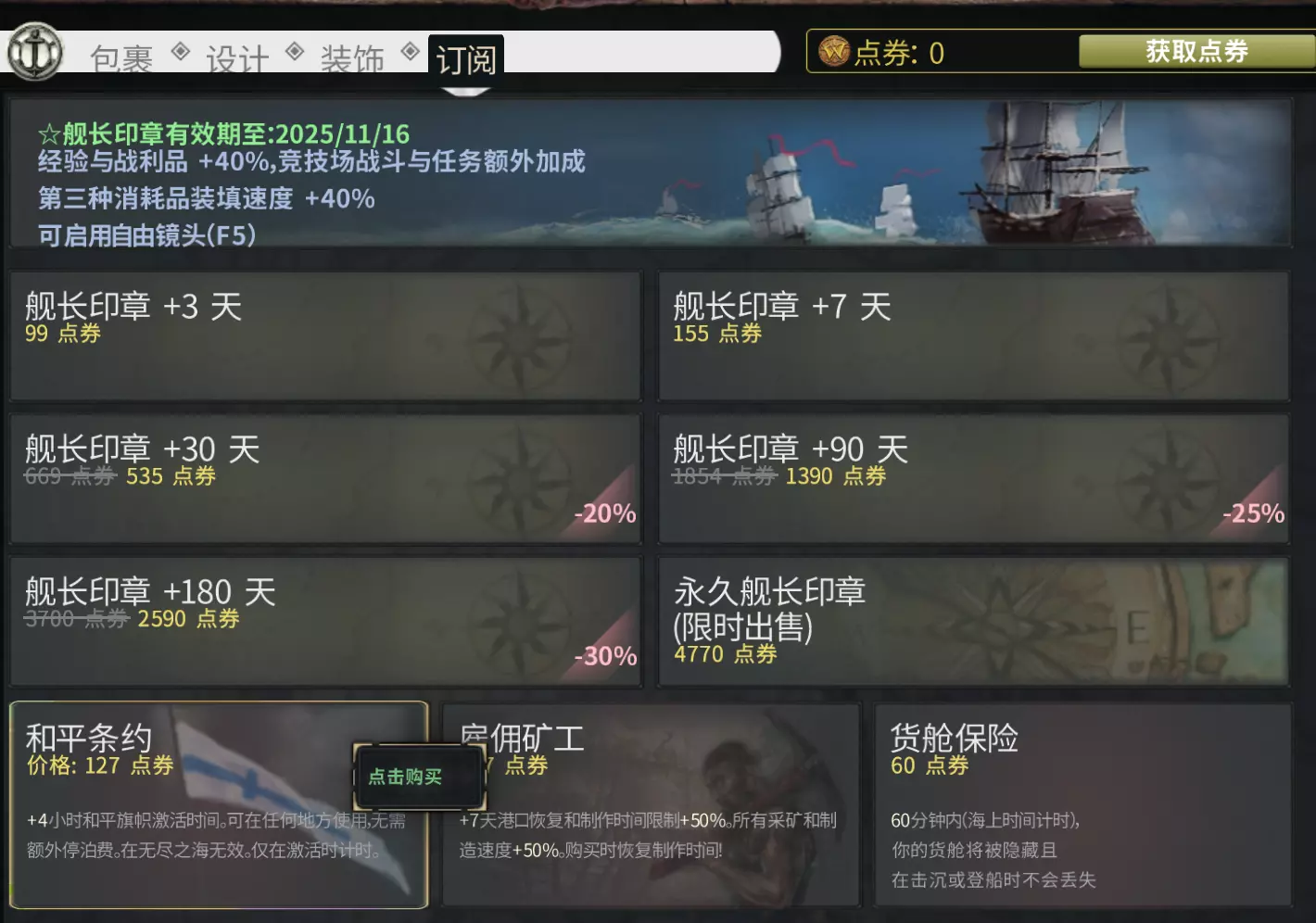 新手赠送舰艇:和平(VII级) 初期拥有较大的货仓和不错的速度,对于开局跑商、收集资源、整理浅水区的港口货物都很有帮助。