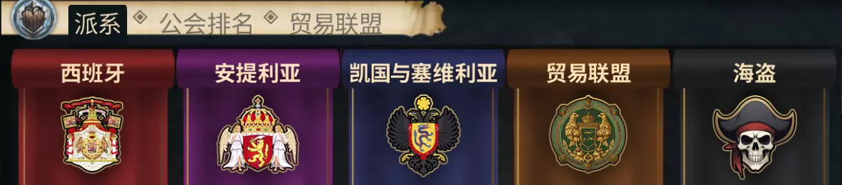 游戏中共有5个派系,每个公会都归属于其中一个。 派系类型特点: - 西班牙:军事派系,与其他军阀和海盗为敌 - 安提利亚:军事派系,与其他军阀和海盗为敌 - 凯和塞维利亚:军事派系,与其他军阀和海盗为敌 - 贸易联盟:对军人和非帮派玩家(中立者)保持中立,对海盗敌视 - 海盗:对一切势力敌视 声誉系统: 游戏采用军事派系的声誉系统,数值范围为-100到+100,适用于三个军事派系(西班牙、安的列斯群岛和塞维利亚)中的每一个。 - 商人:向来对战争保持中立,却对海盗深恶痛绝 - 军方:对商人和中立者保持中立,但对其他军队及海盗持敌视态度 - 海盗:对所有人都怀有敌意战斗中,目标颜色代表如下: 绿色——盟友 棕色——中立 红色——敌对 声誉变化规则: 攻击中立者或商人→减去三个军事派系的点数 攻击军方或巡逻船→减去其所属派系的点数,加上其他两个派系的点数 击退海盗→增加三个派系的点数 在港口完成任务可提升声誉(奖励+声誉) 若中立或联盟玩家率先对你发起攻击,其昵称及生命值将显示为红色,但公会标签颜色仍保持原样(例如盟友的绿色)。 重要提示:游戏中有【友军火力】机制——你可以对盟友造成伤害。战斗混乱时很容易搞混目标,可能会导致其他玩家误将你视为敌人并发起攻击。 如何查看自己的声誉?请按Tab键查看最近信息。
