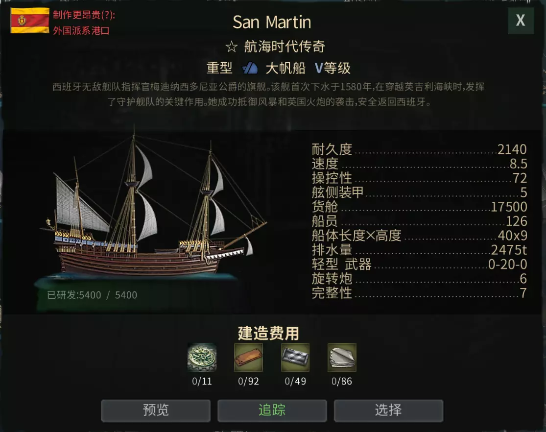 圣马丁,竞技场常客,5级海域也能应付大部分敌人,但船体笨重是弱点