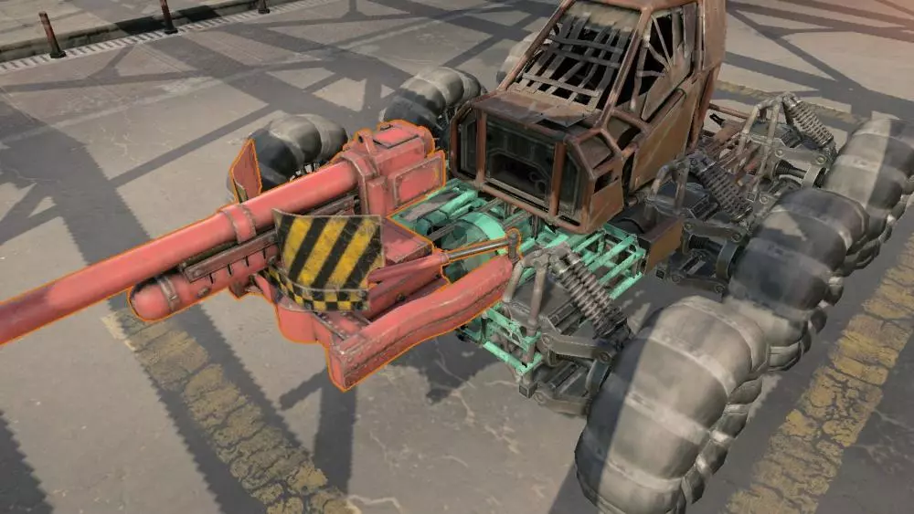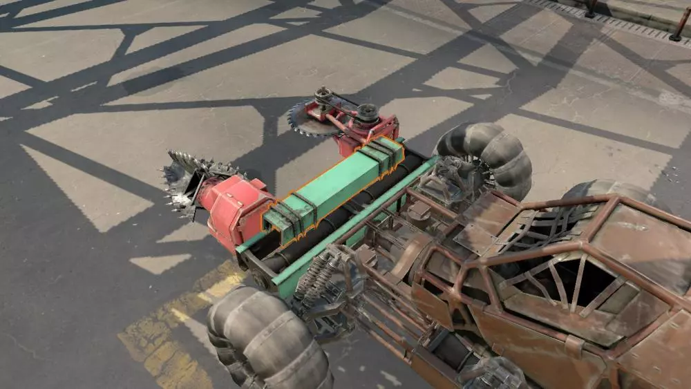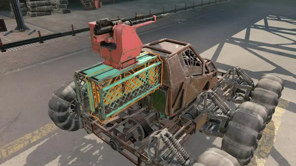 武器支架的使用并非那么简单直接。主要区别在于:最好同时安装在不同的支架上。具体来说是: 驾驶室 保险杠 车架 格栅 需要注意的是,我没有给这些位置排序,原因很简单:它们之间没有优先级之分。安装在车架上,大体上和安装在保险杠上效果相当,而安装在格栅上则比较危险。我没有提到将机枪安装在驾驶室上,这并非偶然。把机枪安装在驾驶室并不是个好主意,尽管这是最稳固的安装方式,原因在于装甲。如果你把机枪装在驾驶室上,就无法很好地为车辆前部装甲,而如果你想攻击敌人,这一点很重要,因为如果敌人能向你射击,他们就会这么做,而且会直接击中驾驶室,因为当你靠近他们时,他们无法射击到机枪。保险杠和框架并非无缘无故出现在近战武器列表中,它们确实对撞击伤害具有抗性。此外,保险杠还能发挥另一作用:如果你失去了近战武器,借助保险杠可以造成更高的撞击伤害。这无疑是个不错的额外奖励。 至于格栅,其原因与武器固定装置相同,它们很难被击落。是的,它们对撞击伤害没有抗性,但为了不让你的里程轻易被夺走,还是要做好防备。不过在这种情况下,不一定非要把里程本身固定在格栅上,把格栅和带有里程的保险杠固定在一起也是正常的解决办法。不过,只使用格栅作为近战武器的固定装置并不是个好主意,因为如果你遇到另一个持有近战武器的玩家,当对方的武器(比如电锯)碰到格栅时,他们几乎可以立即打掉你所有的近战武器。【重要】本指南为你介绍了建造的基础知识,但这并不意味着其中列出的是所有情况下的最佳方案。请在建造方面不断学习和进步,有时非标准的解决方案会比旧的、经过验证的方案更好。
