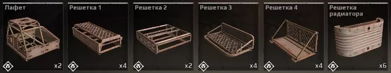 将车辆的任何部件固定在驾驶室上是最可靠的方式。只要将任何零件固定在驾驶室的1个格子上,就只能通过两种方式将其击落:摧毁驾驶室或击落零件本身。不过,说到武器,安装在驾驶室上需要明智考虑,尽管驾驶室本身很坚固,但在驾驶室附近安装2-3挺机枪绝不是好主意,这种情况下,这些机枪甚至可能被一发炮弹就轻易摧毁。此外,在实际战斗条件下,另一种安装方式,即安装在机械师格栅上,坚固程度也毫不逊色。 机械师格栅安装