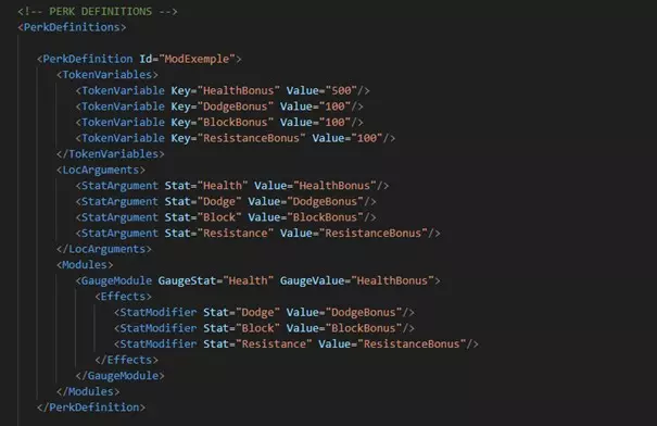 此模块的目的是为游戏添加新的 perk( perk)。 简介 此模块的目的是为游戏添加新的 perk( perk)。 结构 与本地化模组需放置在 Localization 文件夹内的方式相同,Perks 模组需放置在 Perks 文件夹内。模块并非强制要求,且彼此兼容:在单个模组中,你可以同时包含多个模块,也可以只实现一个,具体取决于你的需求。 配置 XML 文件 config.xml 文件支持 4 个子模块: PerkDefinitions UnitPerkCollectionDefinitions UnitPerkCollectionSetDefinitions PerkIconsFolderRelativePath