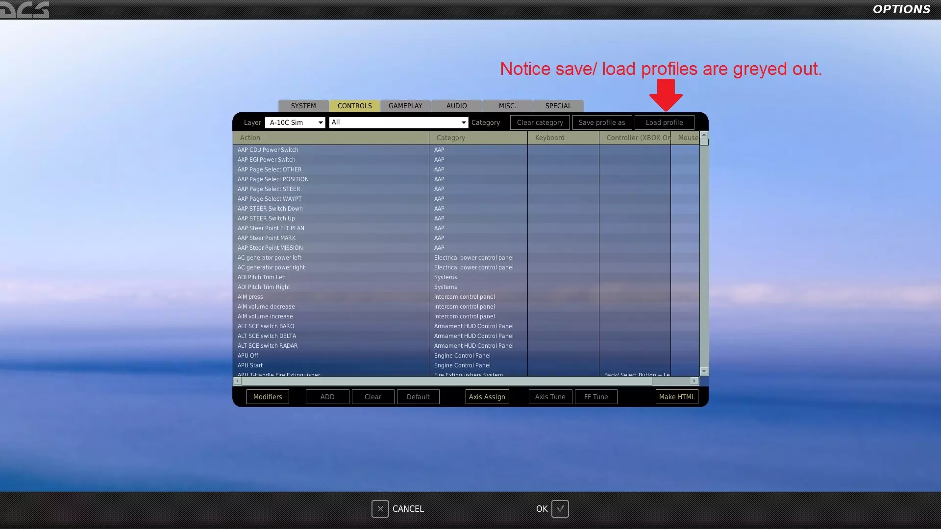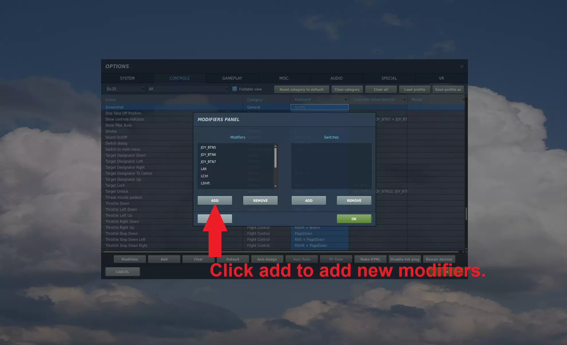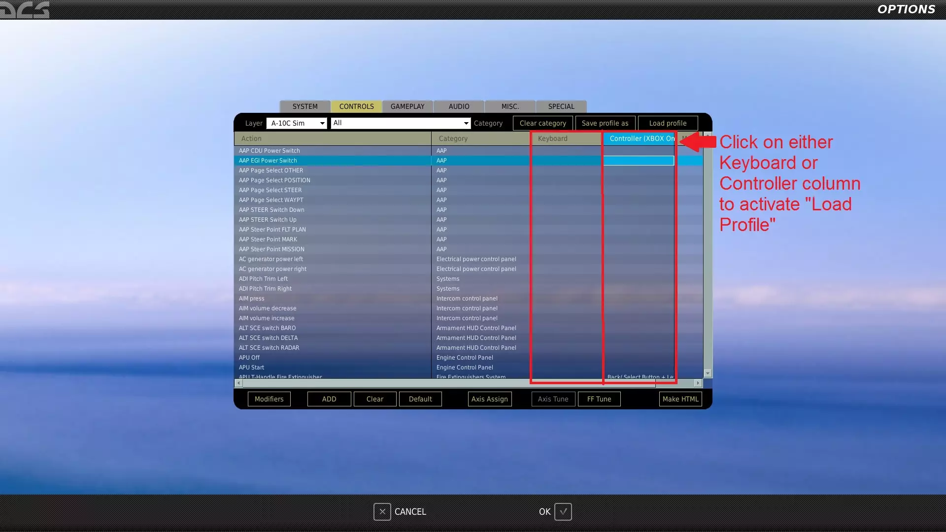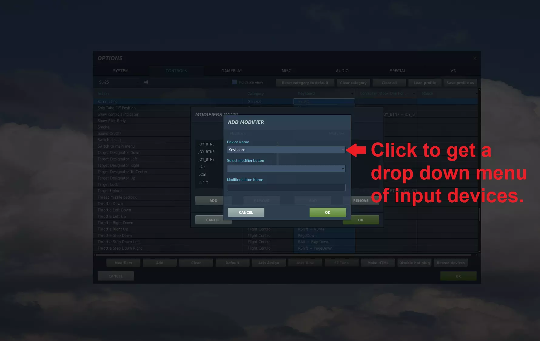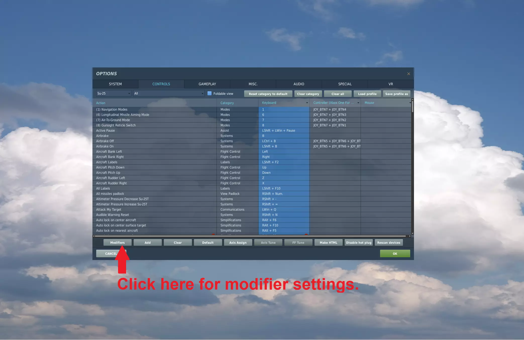 .note:我正尝试将所有控制整合到一个名为ALL的.diff.lua文件中,但该文件尚未完成。目前仅包含以下内容: - A10-A - A10-C - A10-C II Tank Killer - A-4E-C(模组/免费飞机) - F-14B - F-15C - F-16C - F/A-18C - J-11 - Ka-50(未完成) - Mi-24P(制作中) - Mi-8 MTV2 - Mig-29(未完成) - Su-25 - Su-25T(免费飞机) - Su-27 - Su-33 - TF-51D(免费飞机) - UH-1H 此外,我正在尝试取消所有修改器,使该文件比之前的版本更接近即插即用。 如何加载.lua文件: 1) 进入设置