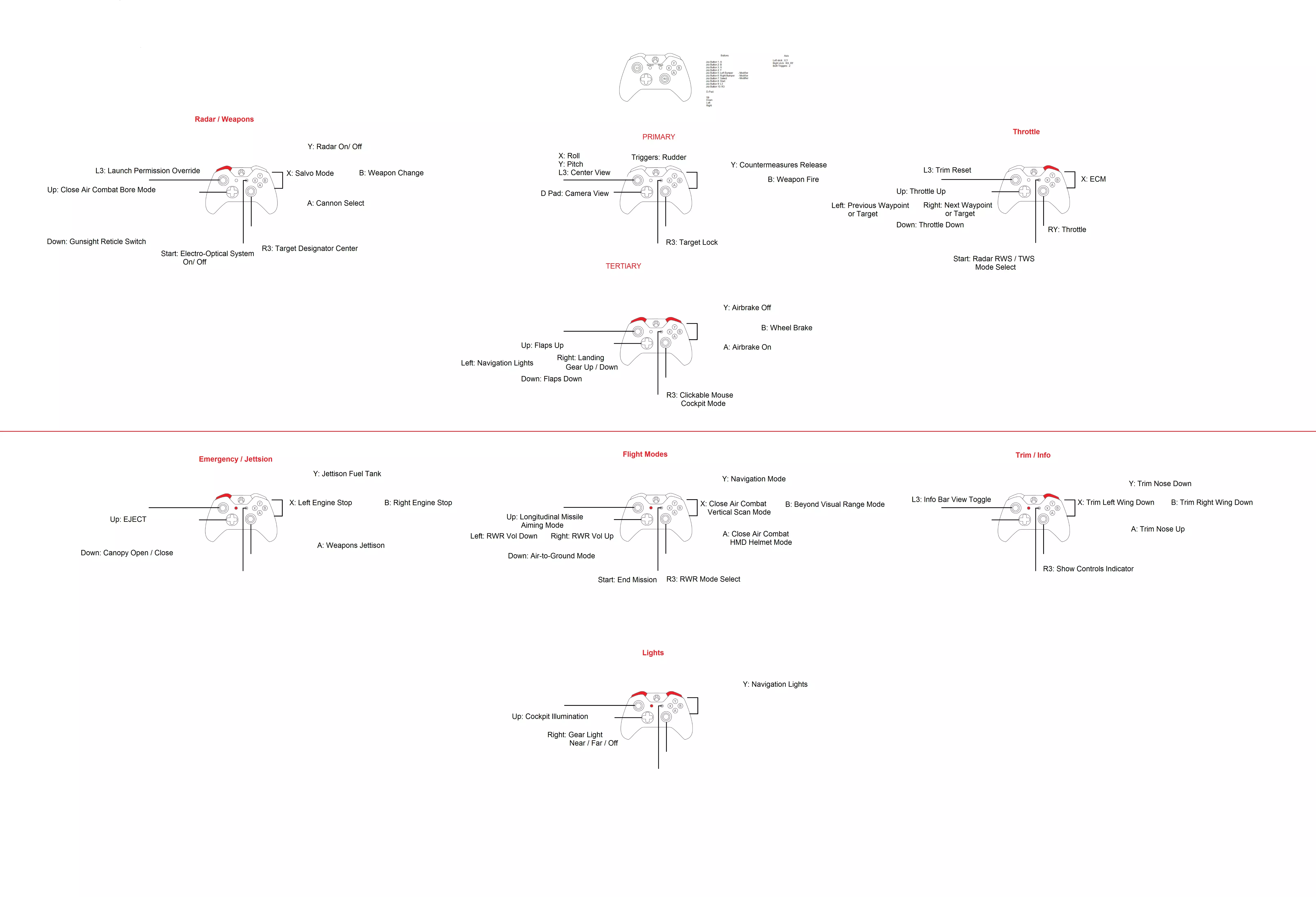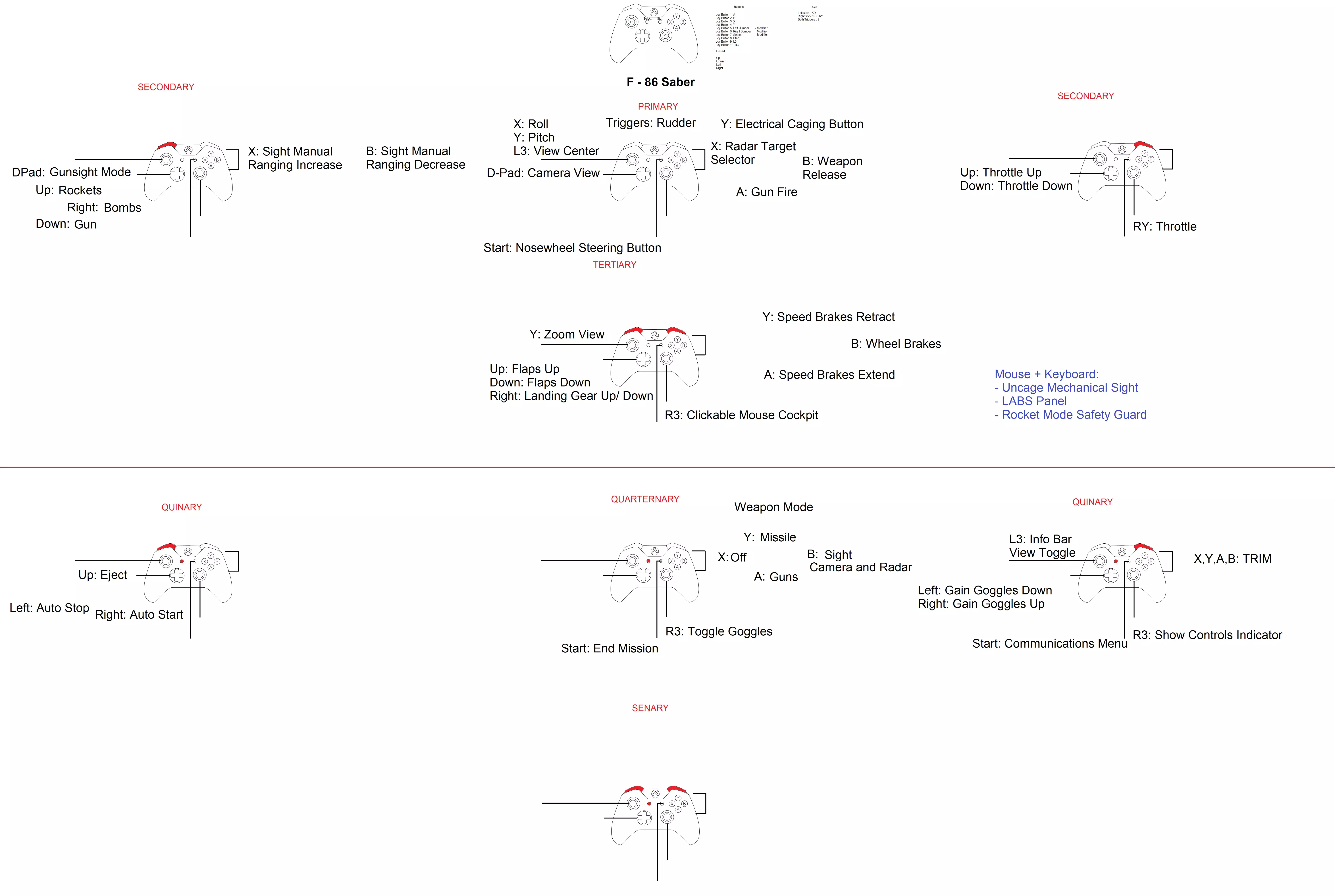 DCS:UH-60L(社区模组)(开发中) 我之后会处理控制方案,如果你需要尽快设置一个,它会与之前的直升机设置类似。 仅适用于飞机的控制器映射。没有.Diff.lua文件,因为我没有该模块。 此部分适用于我没有的模组的控制器映射。我不太确定绑定是如何设置的,所以我的最佳猜测来自手册和查克指南。 1) F-86佩刀 有人请求F-86的控制器映射,所以我制作了这个。我没有该模块,所以没有存档文件。
