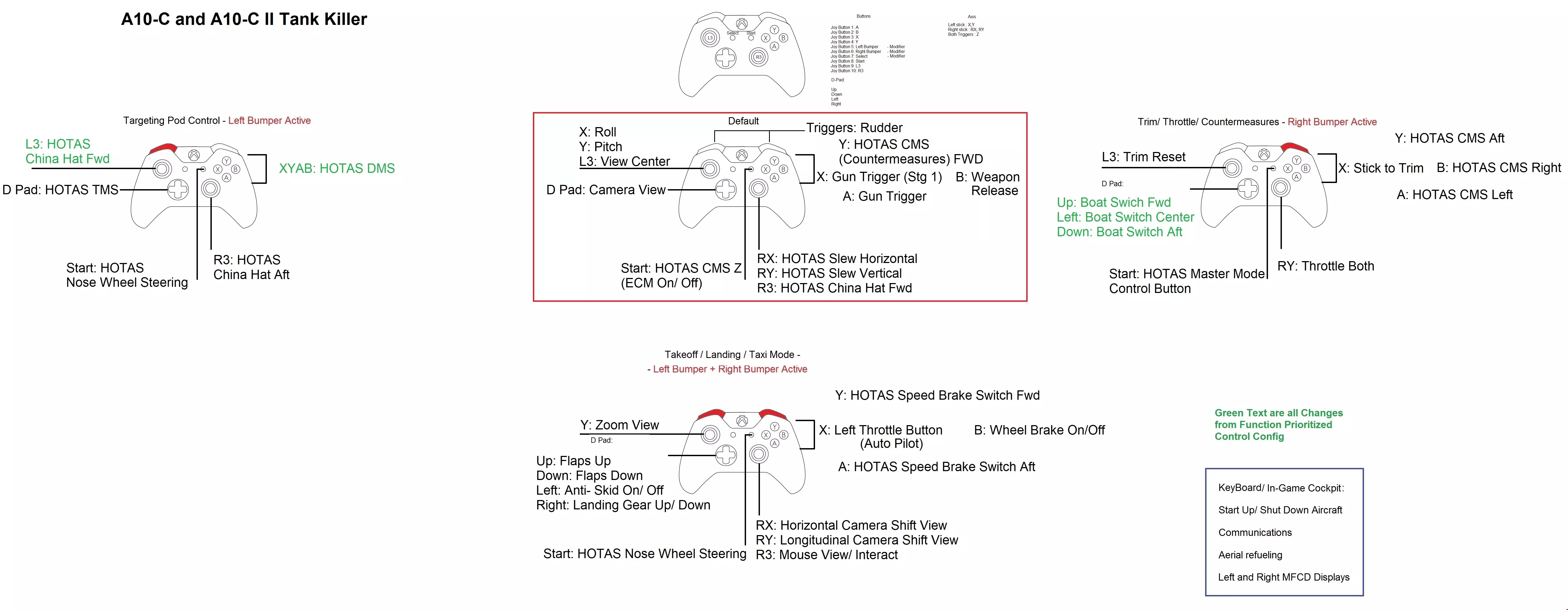 按钮优先级(更易于学习按钮及其功能)。下方为更简单的着陆操作。 建议了解HOTAS控制的功能。关于A10-C的控制,所有绿色文本均为需要修改的内容,目前没有相关保存文件。