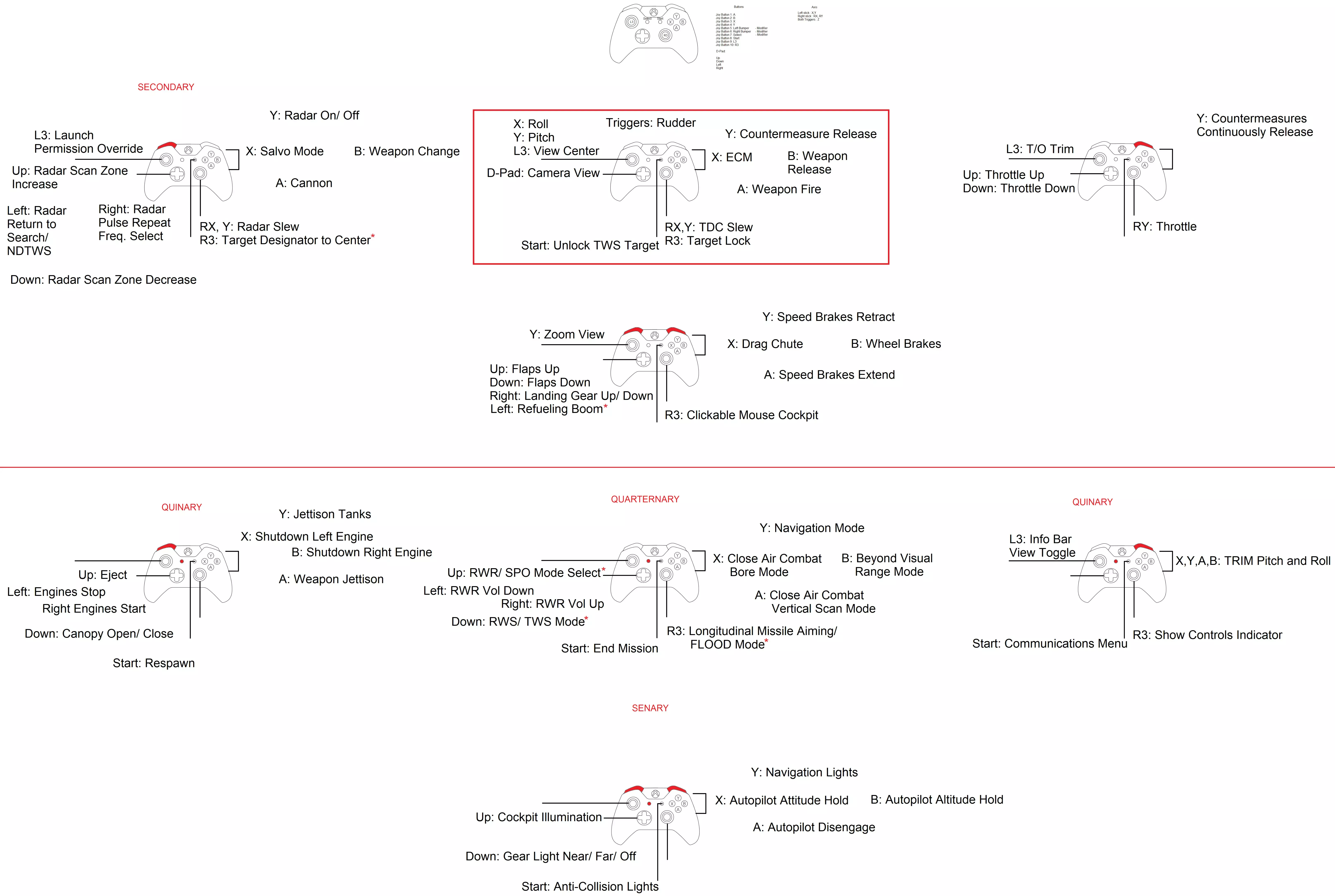 红色星号表示与先前版本相比新增的绑定布局。 DCS: F-16C DCS: F/A-18C 红色星号表示与原版相比新增的按钮功能。