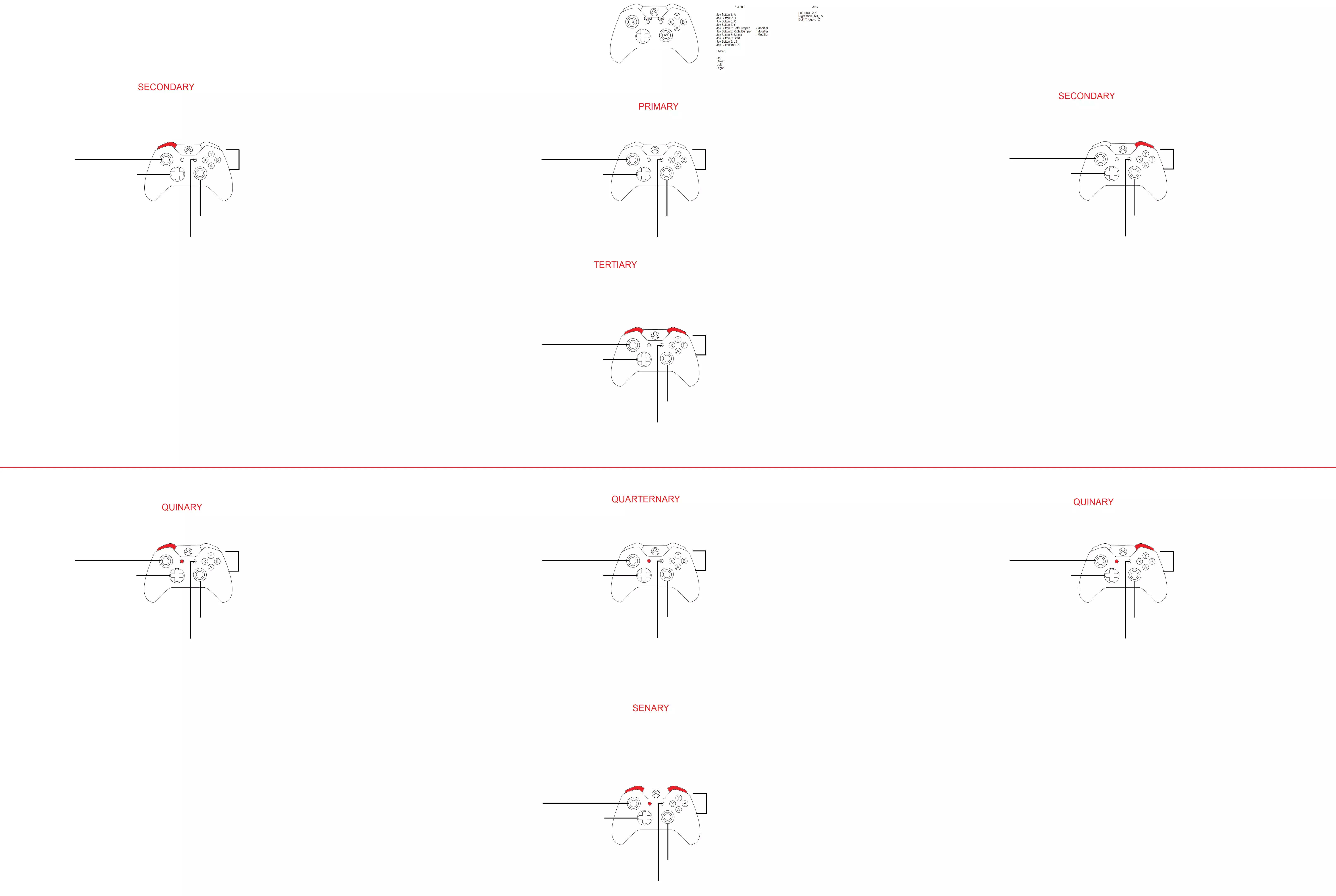 如图所示,左扳机键和右扳机键通过将其中一个设为Z+、另一个设为Z-,被设计为一个Z轴。设置完成后,运行《数字战斗模拟世界》,查看游戏是否将其识别为一个轴。注意:我在新版本的《数字战斗模拟世界》中没有遇到此问题,在此保留该解决方案供遇到此问题的玩家参考。 问题:LUA文件显示为红色/无法正常工作 感谢@Fatsquirrelmahn和@CPL Kuma 1. 从评论区下载配置文件(我会在之后重新上传文件)。 2. 将配置文件(Lua文件)加载到设置中,此时会显示部分设置呈红色高亮。这些缺失的按键包括开始键、返回/选择键、左肩键和右肩键。前往设置左下角的修改器按钮手动进行设置 - 开始键为手柄按键8 - 返回/选择键为手柄按键7 - 左肩键5为手柄按键5 - 右肩键6为手柄按键6 【确保修改器的名称与设置中红色突出显示的名称完全一致】 3) 根据图示检查所有按键是否正常工作! 2021年1月3日更新:正在努力保留修改器的默认名称,以便lua文件安装后即可使用。 2021年5月15日更新:你也可以尝试Joystick Gremlin和Joytokey作为免费替代方案。感谢之前评论者的建议。 鸣谢 Xbox控制器模板归功于TheWolfBunny