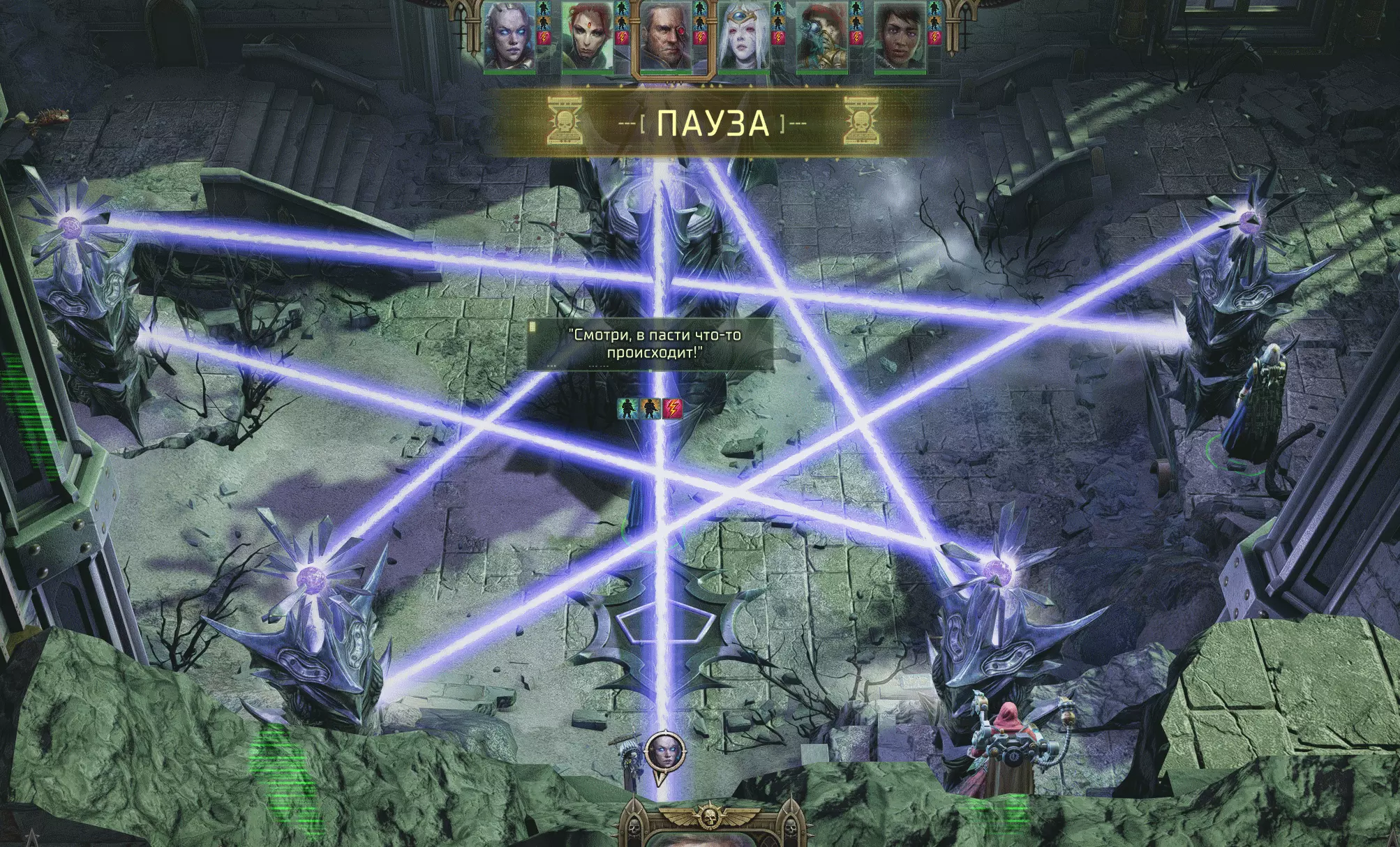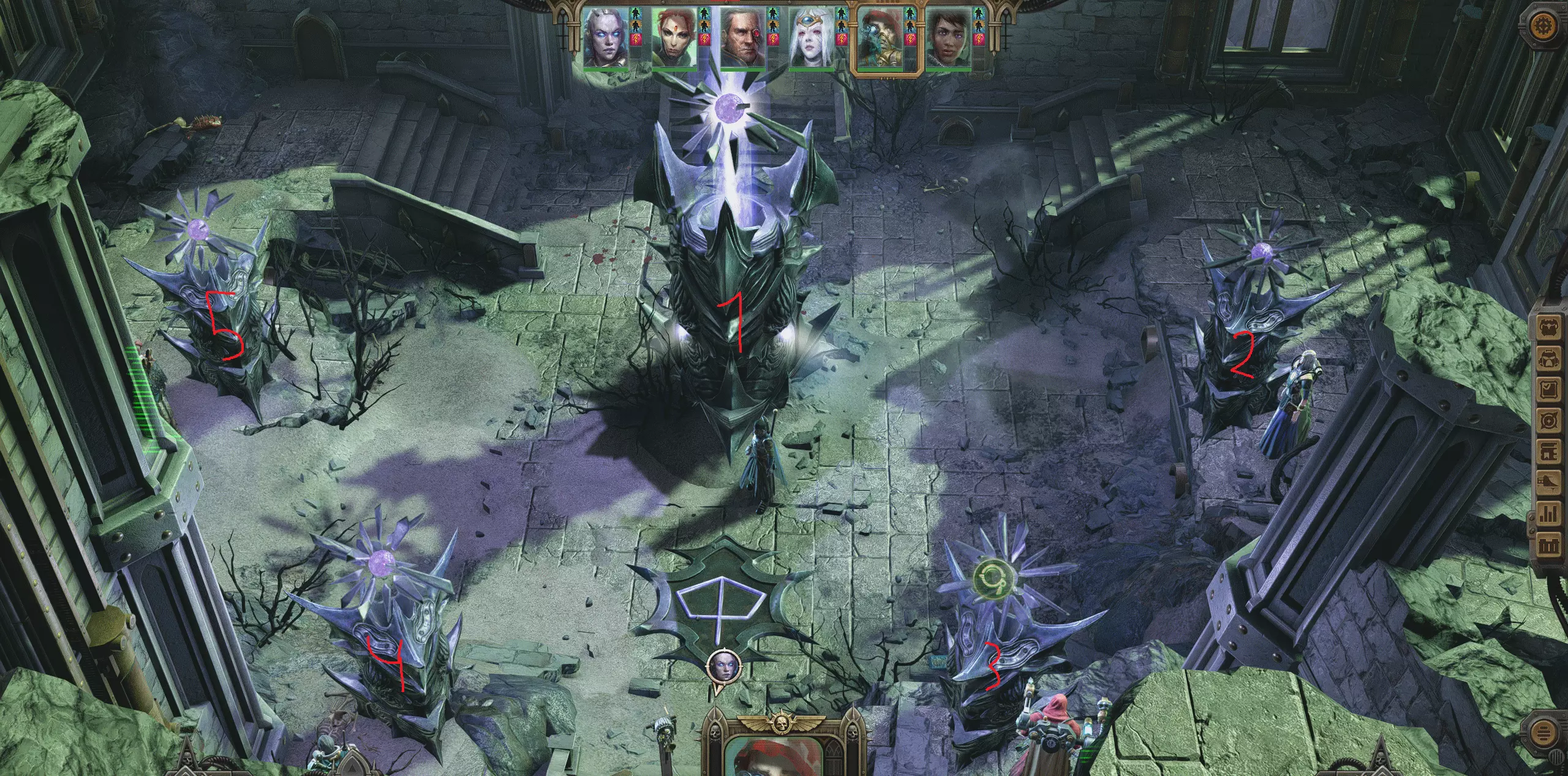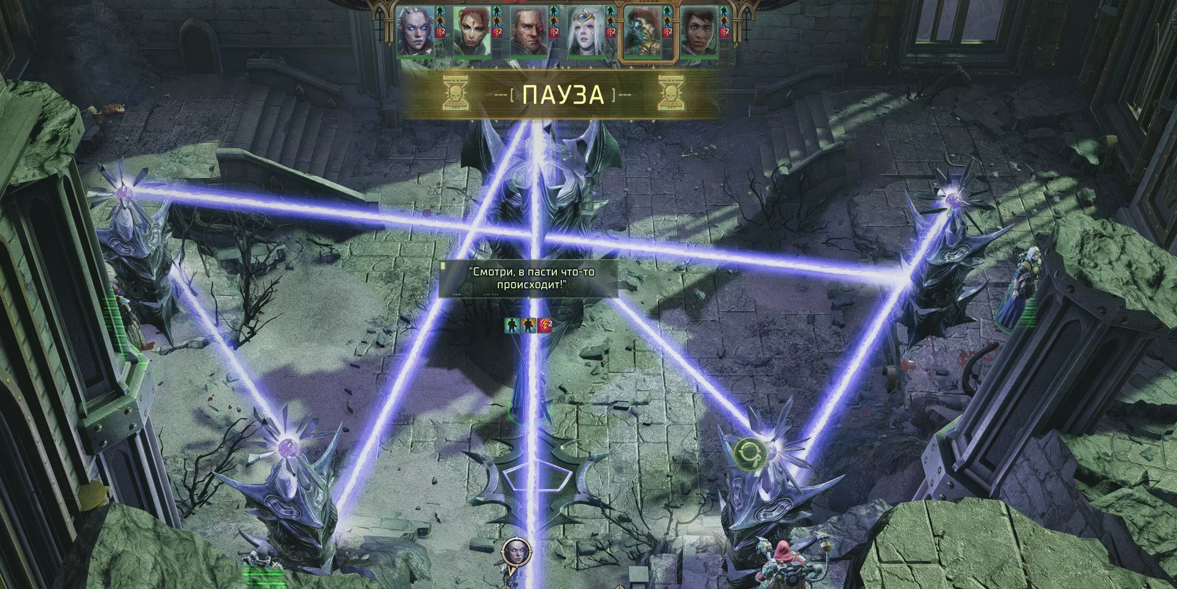 头盔自然只能给她,而且也很适合她,因为她是射手,而感知属性能降低目标躲避她射击的概率。至于护身符,可以给某个灵能者。我的宇宙精灵主要作为狙击手作战,很少有人能活着接近她。 当你们从宝箱中取出物品后,【奸奇尖啸者】和两只粉色恐怖怪物就会向你们发起攻击。