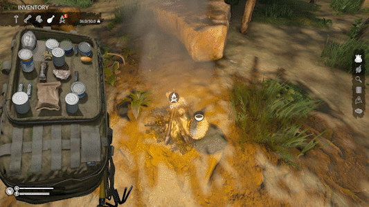用任意武器杀死它后,用刀片进行采集。确保同时获取【龟壳】和【龟肉】。没错,我知道这有点奇怪——杀死陆龟却获得海龟的部件。不过没关系,这是游戏的设定。 现在你已收集到所有部件,生一堆火并将龟壳放入火中。用【水壶】往龟壳里装入干净的水。如果水不干净,你可以用龟壳在火上净化水。当干净的水装入龟壳并加热后,加入龟肉。大功告成!