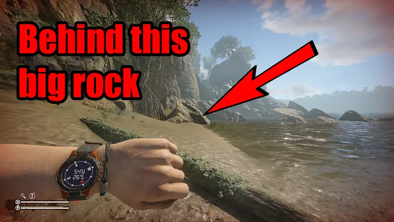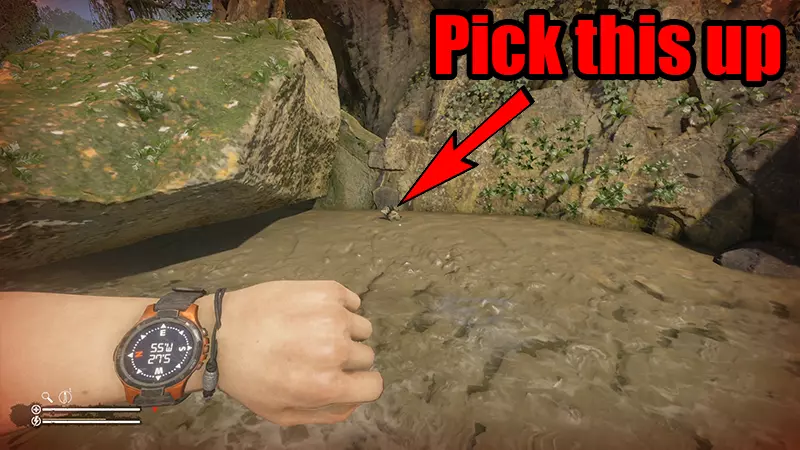 游过去,你会在水边的岩石上发现生长着绿色蘑菇。