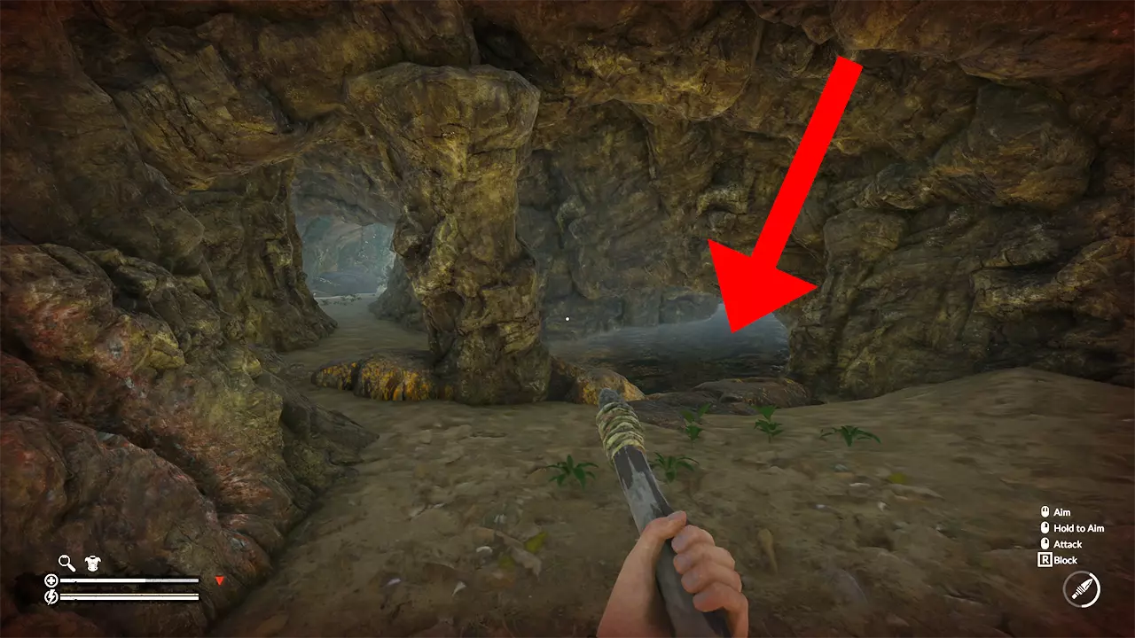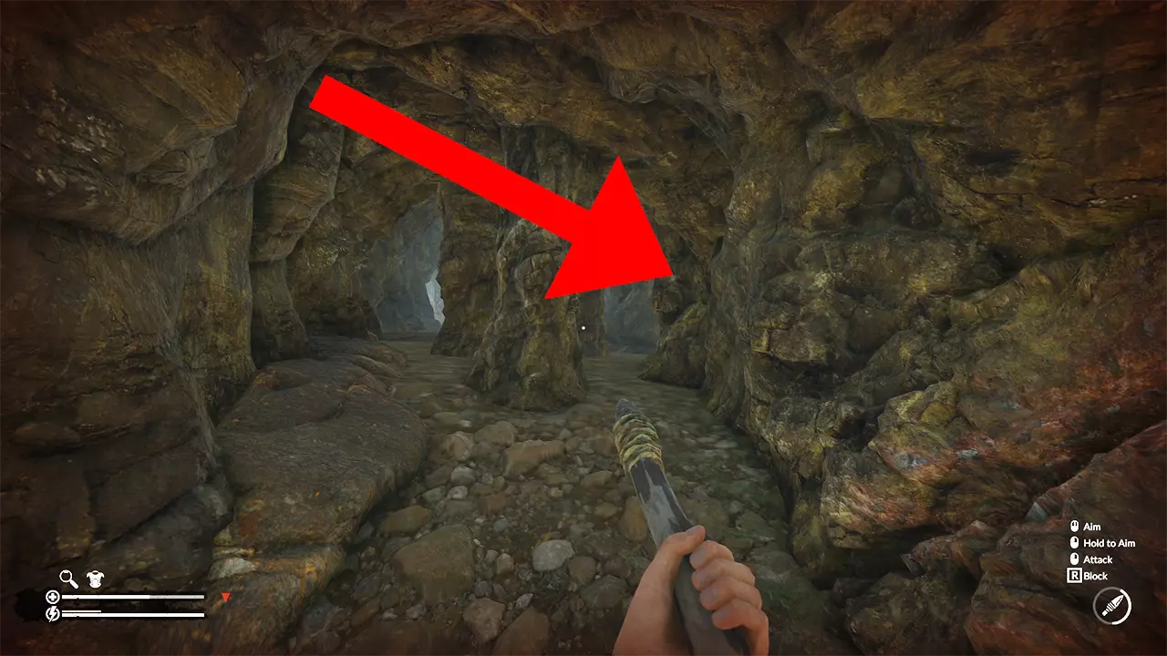 向上攀爬,沿着小路前往一个洞穴。