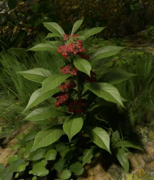 Psychotria是一种结有红色浆果的小型植物。可使用工具或武器进行采集。