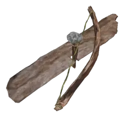 火焰弓 制作材料:1把弓、1块石头、1根小树枝、1块木板