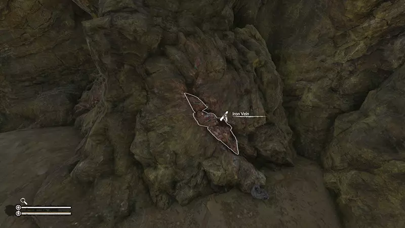 首先,金属盔甲穿在玩家身上时没有重量。这一点非常重要且实用!现在先说明这一点,接下来进入正题。 显然,既然是金属盔甲,你就需要铁。要获取铁,玩家需要找到铁矿脉,并用石镐或金属镐开采。制作一整套盔甲需要6块熔化的铁(通过熔化矿石或金属罐获得)。 铁矿脉可在洞穴中发现,可开采的铁矿脉外观如下。