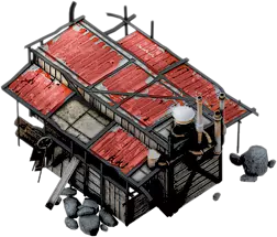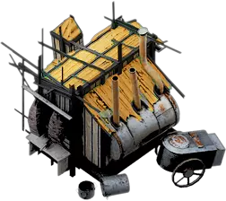 野外厨房是一座可容纳5人工作的小型建筑,它消耗食物为附近的工作场所提供供暖等级加成。如果煤炭产量不足以更好地为这些场所供暖,或者相关研究尚未完成,这是一种更有效的建筑供暖方式。