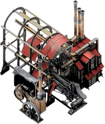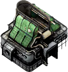 蒸汽煤矿是煤矿的更高级版本,需要2个蒸汽核心,基础供暖值为2。如果已建造煤矿,可花费更低成本将其升级为蒸汽煤矿,即少用1个蒸汽核心。 蒸汽煤矿仍需10名工人运作,但与普通煤矿不同的是,它每个标准工作日可产出600单位煤炭。通过进一步升级,其产量可以得到提升。