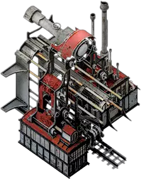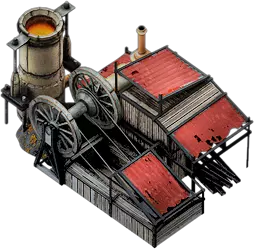 蒸汽钢铁厂是钢铁厂生产线的第二级。它的基础加热值为2,在标准工作日内可为城市生产70单位钢铁。