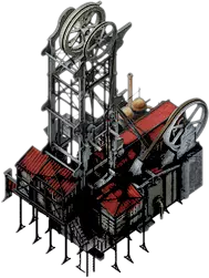 煤矿是一种需要特定建造地点的建筑,建造时需要消耗1个蒸汽核心,基础供暖值为1。在标准工作日内,10名工人满员工作的煤矿可产出260单位煤炭。 虽然乍一看煤矿的效率似乎不如煤炭捶打机,但煤矿可以进行多次升级。在仅使用煤炭捶打机三分之一工人的情况下,煤矿无需采集站即可产出接近煤炭捶打机一半的煤炭量。此外,煤矿还可通过2次升级提升煤炭产量,并拥有2项建筑升级来进一步增强其性能。