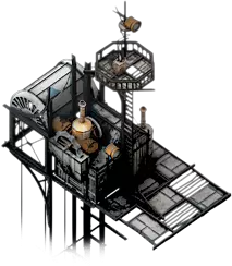 墙壁钻机只能在少数地点建造,且需要蒸汽核心才能运行。不过一旦完成研究并建造,它将提供1点基础供暖,在配备10名工人的情况下,每个标准工作日可产出160单位木材。除供暖外,墙壁钻机没有其他升级项,但其木材产量会随着建筑本身的升级而提升。