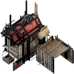 蒸汽锯木厂是更先进的锯木厂,基础供暖值为2,在人员完全配备的情况下,每个标准工作日可产出120单位木材。在升级后的木材产量和覆盖范围方面,它与普通锯木厂相同。 需要注意的是,冰冻树木是稀缺资源,虽然初期数量充足,但一旦树木耗尽,就只剩下另一种木材收集方式,而且如果蒸汽核心短缺,这种方式的成本会非常高昂。