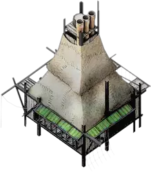 与煤矿和墙壁钻机类似,钢铁厂建筑需要特定位置才能建造,但一旦研究并建成,它的基础供暖为1,需要10名工人,每个标准工作日可生产40单位钢铁。和墙壁钻机一样,除了建筑升级和加热器升级外,没有可研究的直接升级项。