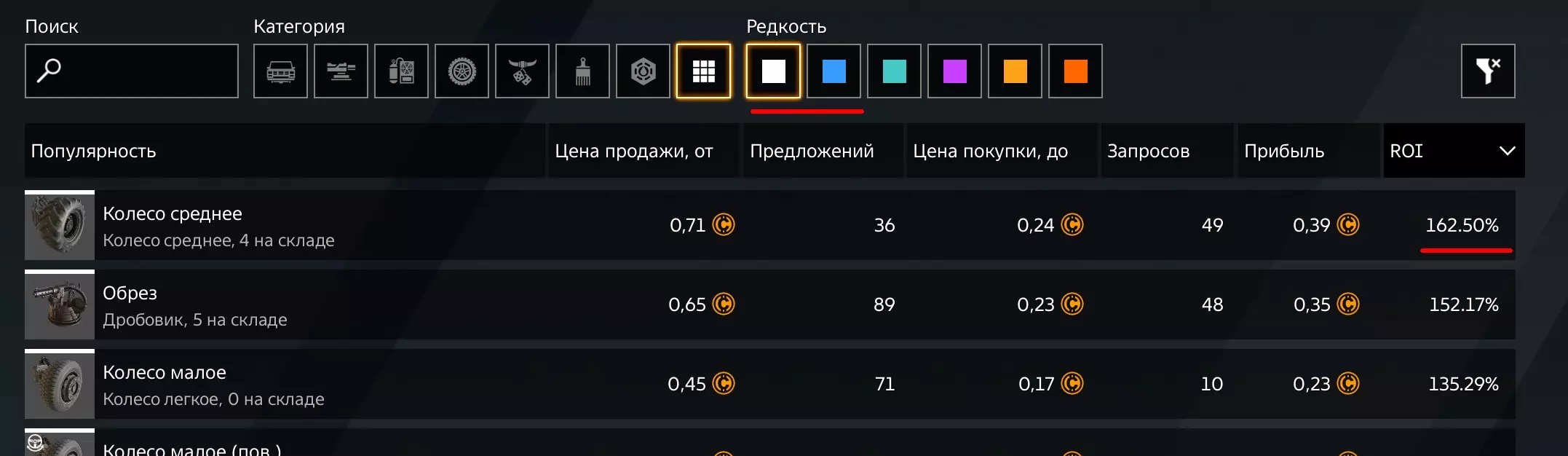 低价买入高价卖出,你可以在战斗间隙为自己赚取额外的金币。为此,请按利润高低对商品进行排序,并添加稀有度筛选。