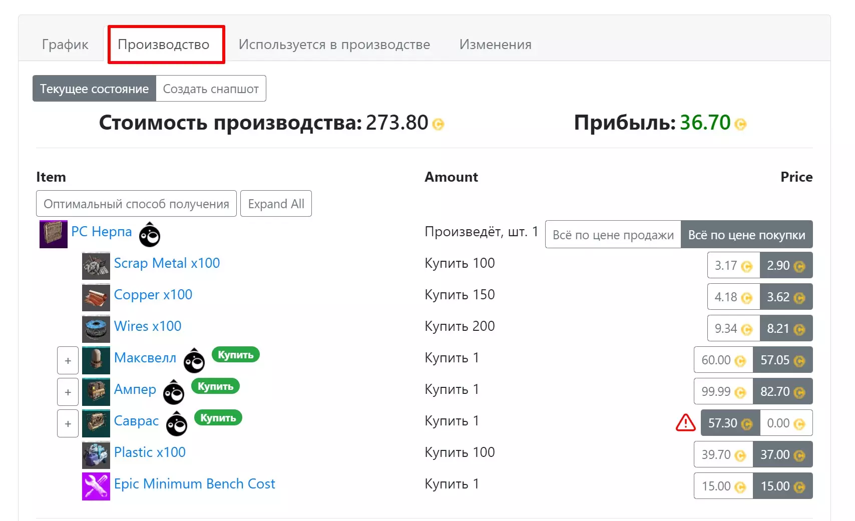 通过生产物品来进行销售。要了解生产什么物品,可以借助相关资源。选择语言为俄语,根据自身经济能力筛选稀有度类型,然后选择商品。在生产标签页中选择最优方案,系统会显示你能获得的利润。开放的商品表示你可以生产,关闭的商品表示你需要购买。