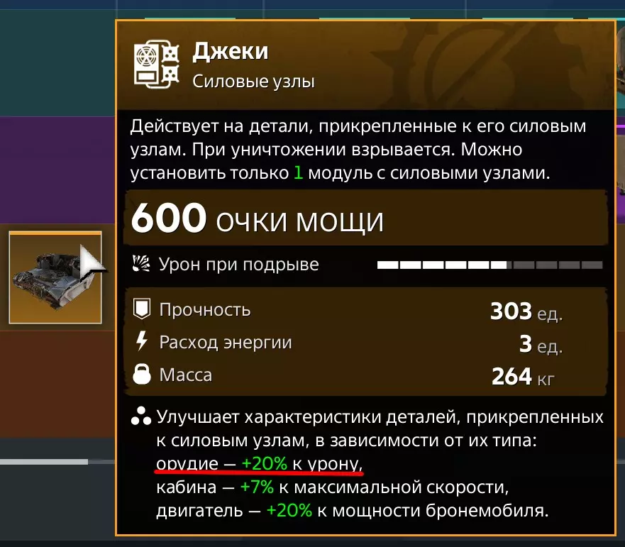 如果将这个模块安装在驾驶室和发动机之间,并在顶部安装武器,用驾驶室掩护它们。但这还不是全部——还可以通过升级武器本身来提高伤害。