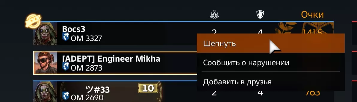 在聊天中右键点击对方的名字 您还可以组建顶尖玩家团队,甚至创建自己的封闭公会。 在展示模式中,您可以寻找武器并在自己的靶场(车库)中进行测试。您还可以寻找武器+座舱+模块,以了解其效能。 不要被任何艺术作品所迷惑。在《创世战车》中,载具首先要在武器等级、战力点数、辅助设备以及关键部位的装甲防护之间取得平衡。