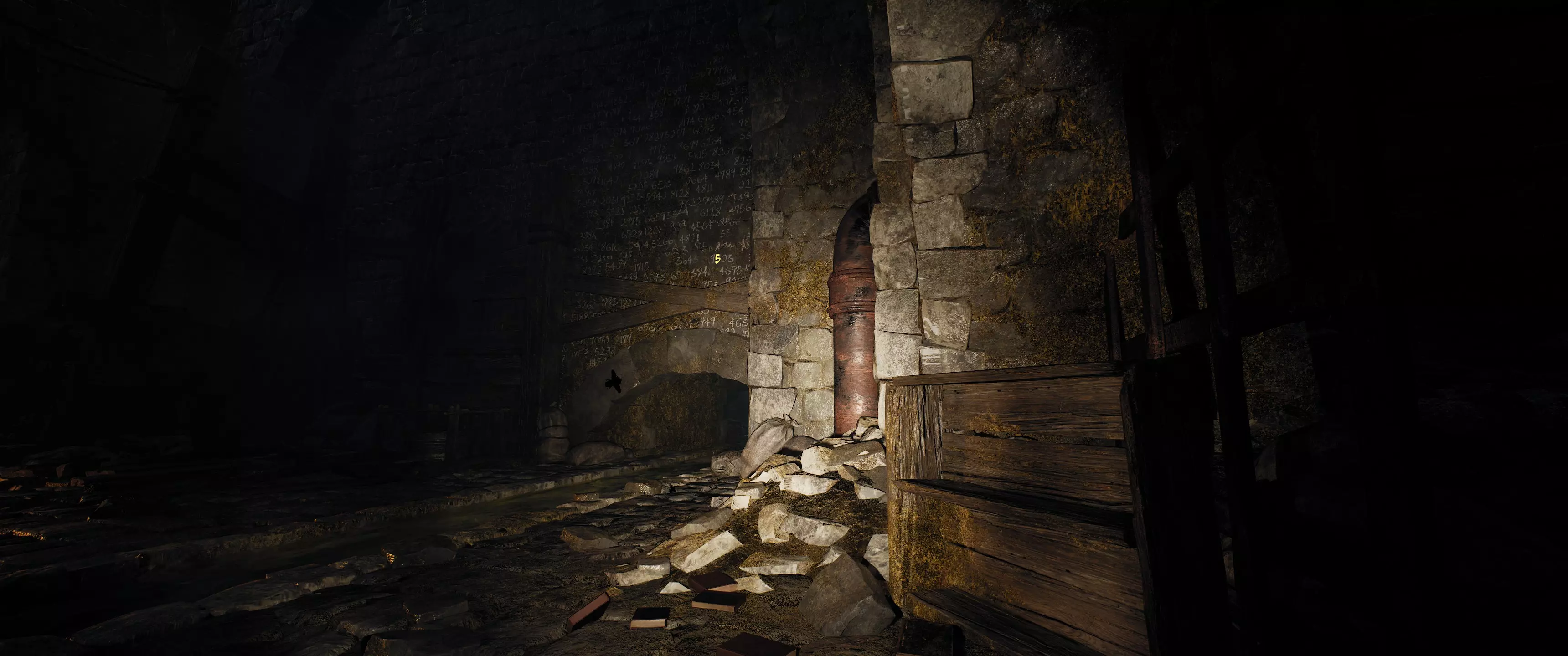 墨水可以使用任意种类。魔法并非源于中间媒介,而是来自源头。传送门可用墨水、水或血液绘制,甚至可以刻在石头上。 “当前的世界交织并非第一次因希尔芙(Sylph)导致空间扭曲。但这一次,扭曲是无意且不可逆转的。” 用获得的魔法笔在宫廷小丑左侧的墙上绘制门。