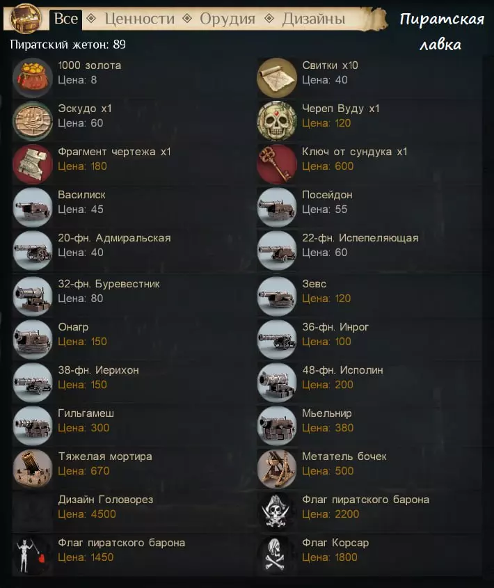海盗商店(使用海盗代币)