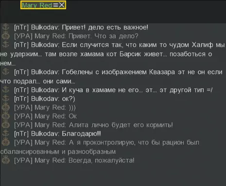 【巴尔斯基(插曲)】 99.9%的玩家都不知道,但许多来自“пТг”和“УРА”公会的玩家都知道,在遥远的西南方向,阿尔-哈利夫港的澡堂附近住着一只名叫巴尔斯基的猫。 这一切都发生得很突然。正如往常一样,每十天伟大的沙赫马赫迈特·伊本·汉法尔(愿其名受赞颂)都会宣布新一轮的竞标。公会的商队遍布海洋各处,天空中飘满了装载着琥珀的热气球,五彩斑斓。根据情报,URA和пТг是港口的主要争夺者,双方实力相当。 但遗憾的是,那天我们没能守住港口。就在最后一艘船驶离码头的那一刻,一道快速的黑影从船尾朝城市方向窜去。我们心爱的猫咪巴尔西克突然决定留在阿尔哈利法。原因不明……或许是鱼没吃完,或许是找到了女朋友,又或许只是不想离开这片温暖的土地。 我们紧急联系了URA的玩家们,请他们帮忙照看这只毛茸茸的小家伙。感谢伟大的马赫穆德,善良的Mary_Red和艾丽塔理解了我们的困境,主动承担起照顾猫咪的责任,对此我们表示永恒的感谢!
