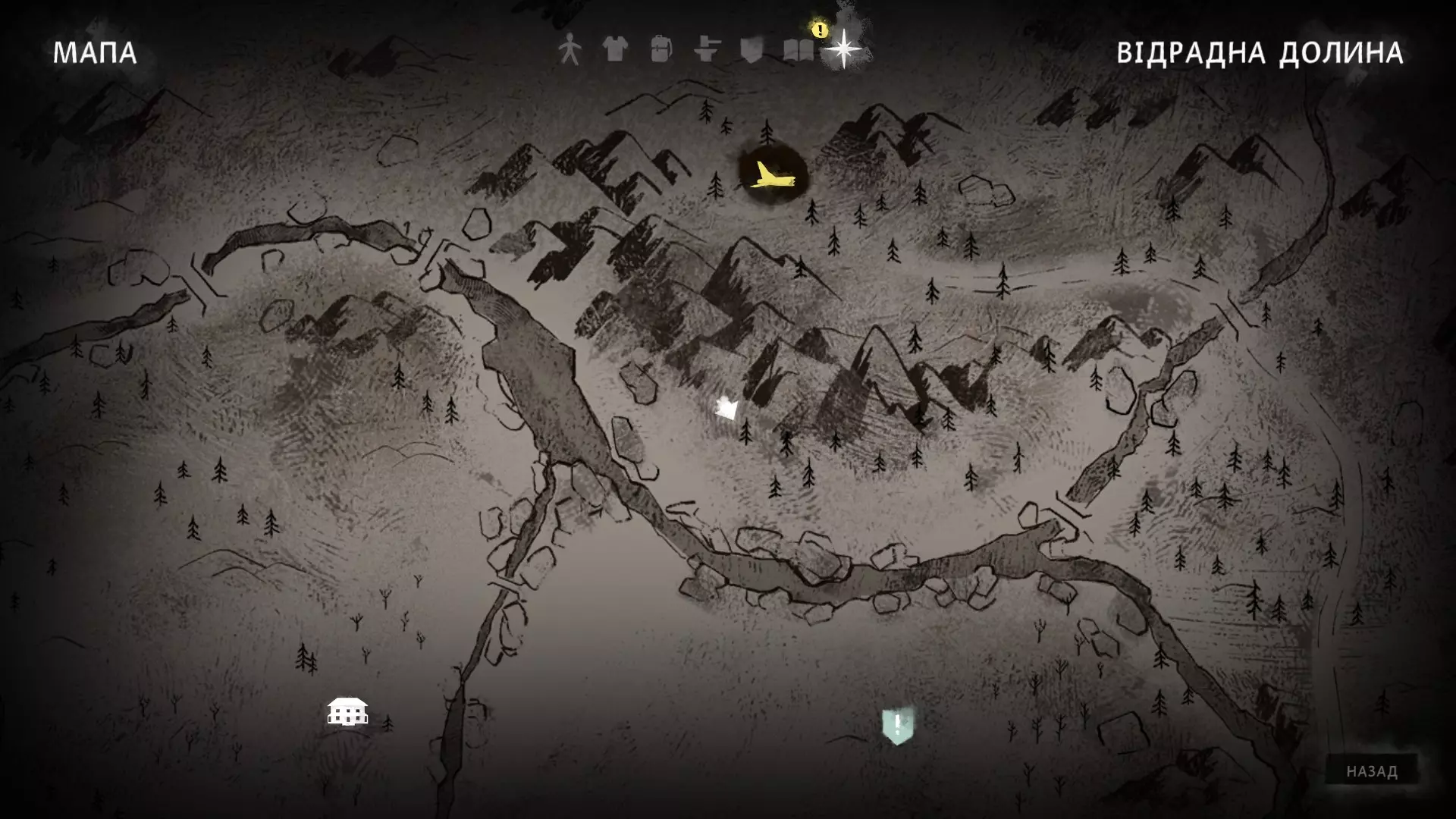 在护林员的小屋。靠近通往孤独龙谷的入口处。屋内有引火用的木柴、3个点火器、一罐桃子。