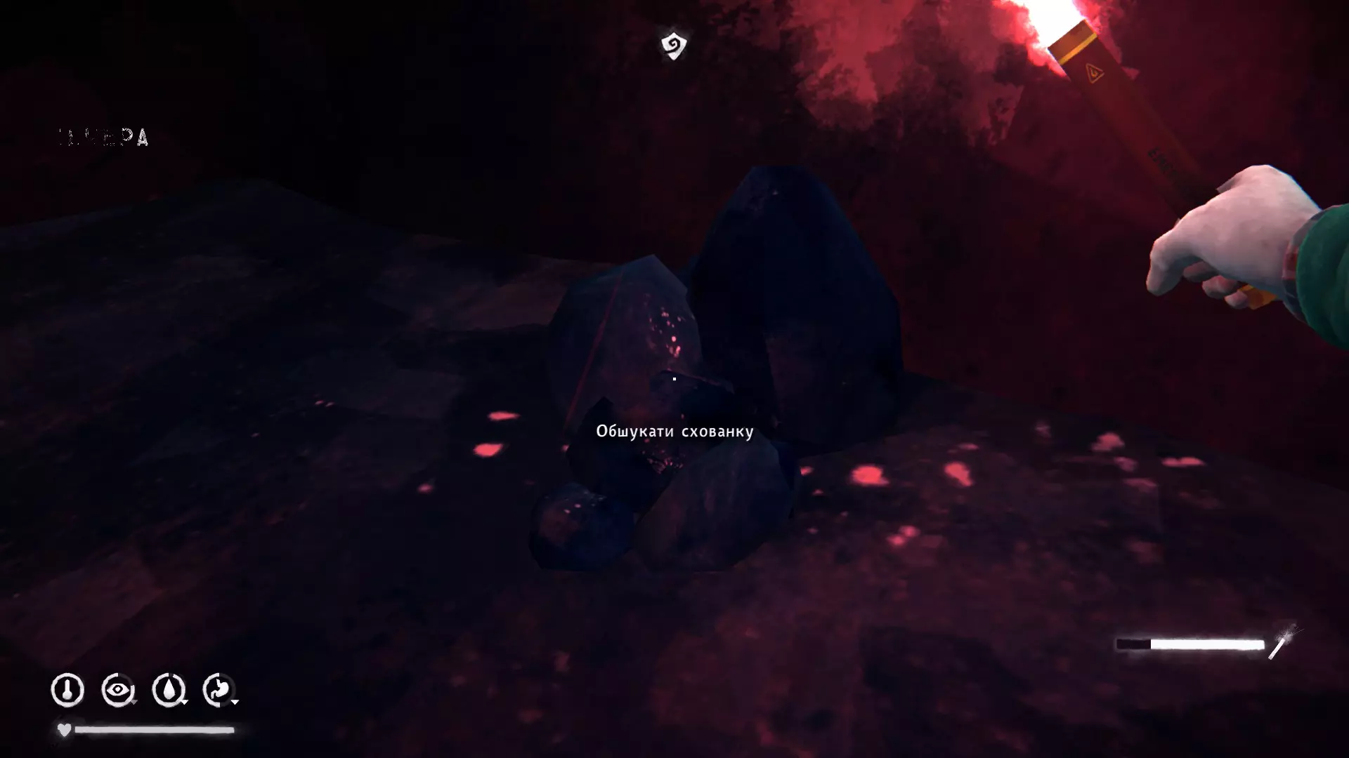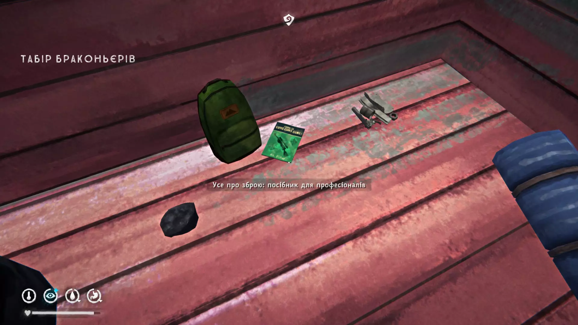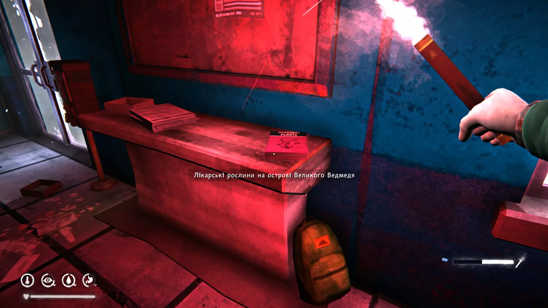 孤狼德古拉 4) 在翻倒的车厢旁的地面上,以乌鸦为参照物。位于关卡起点附近的低处。里面有登山袜、羊毛衬裤、信号军刀、针线包和水瓶。