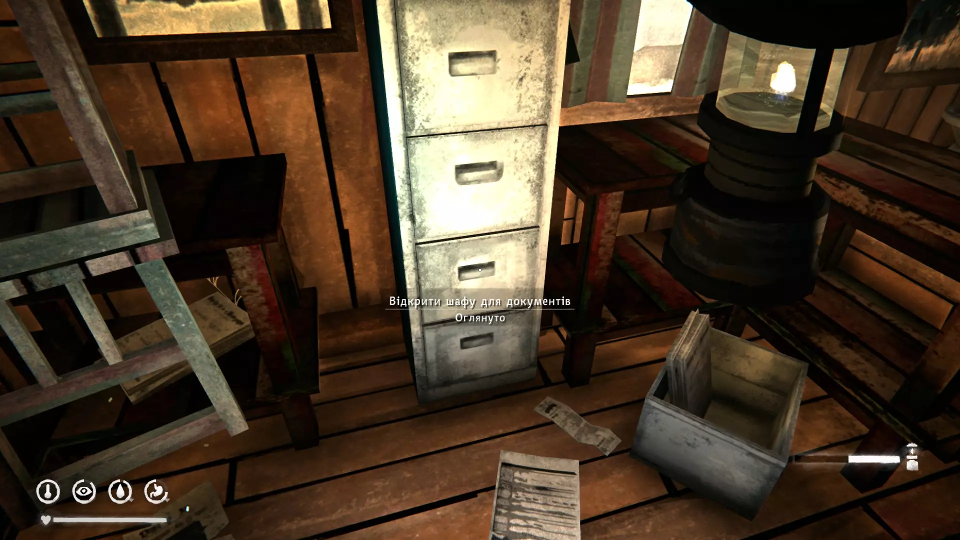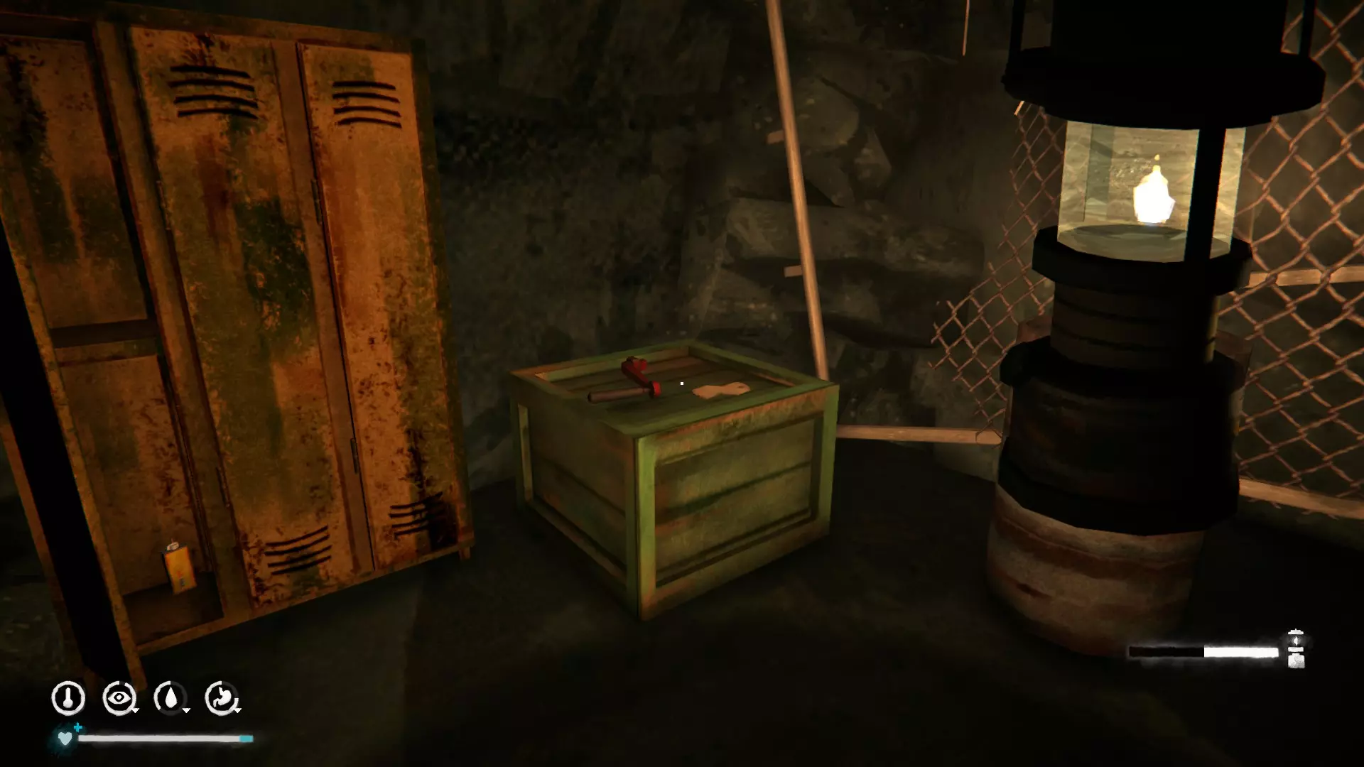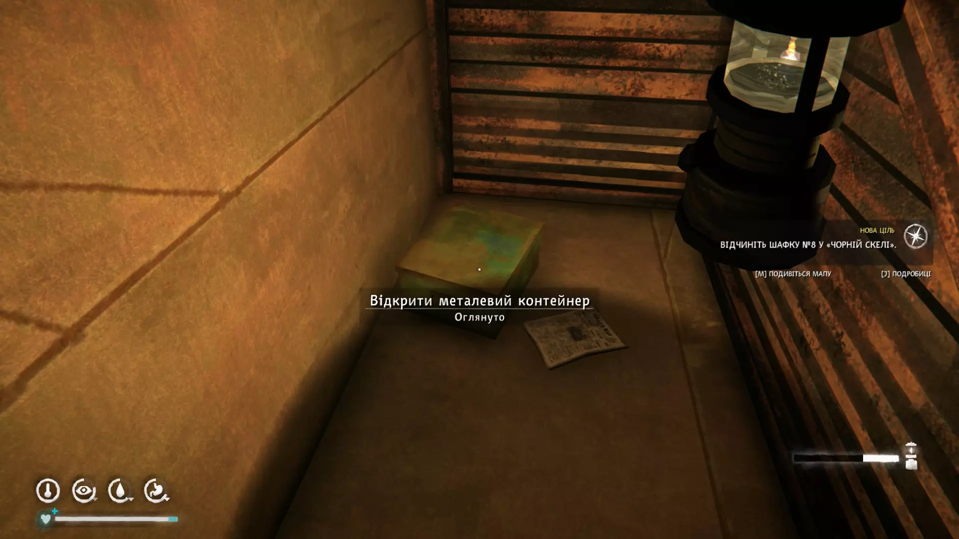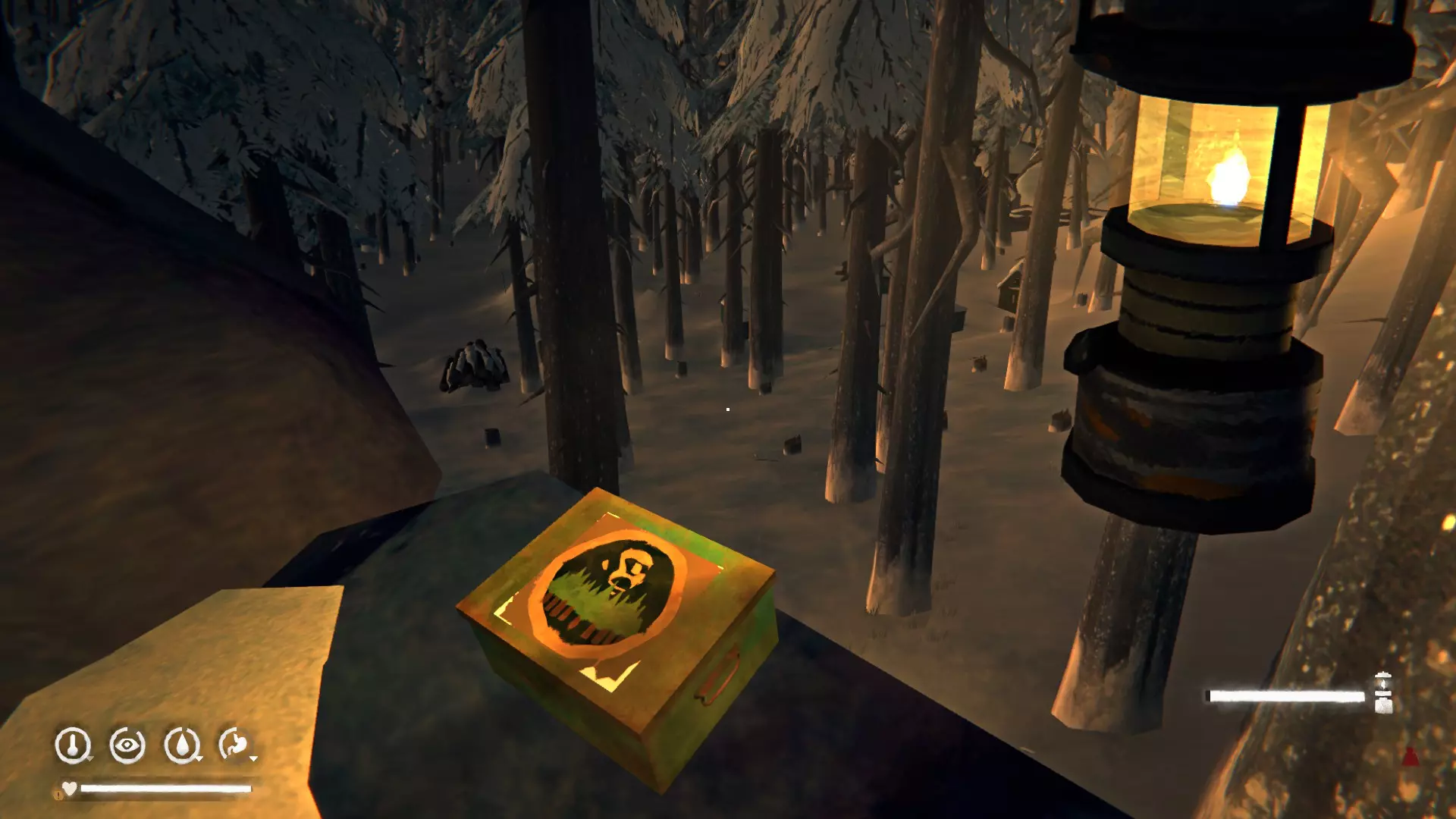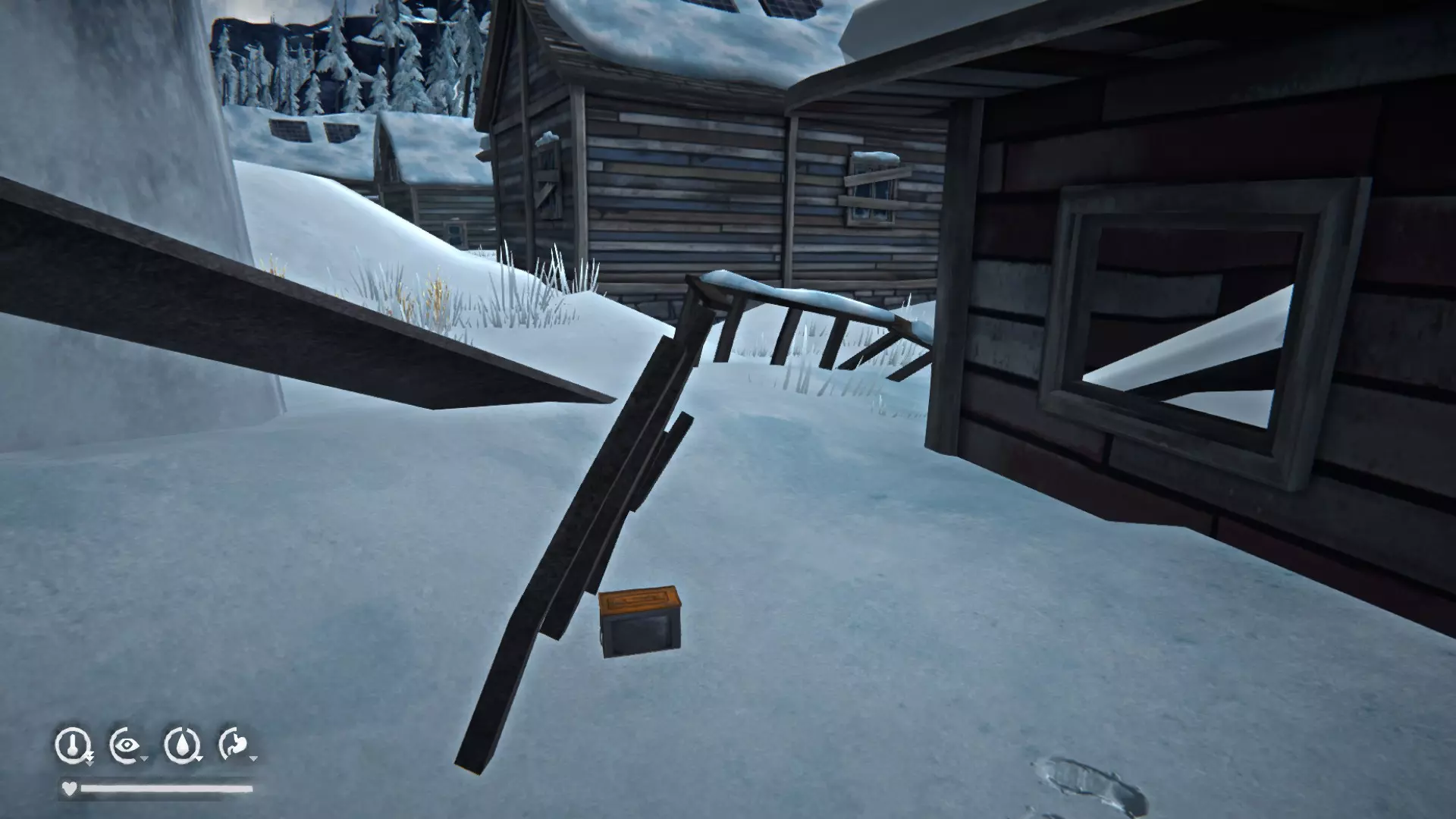 1) 在受损的铁轨处。里面有木制火柴、燃料支架×2、点火器、风干牛肉、带护腕的手套。