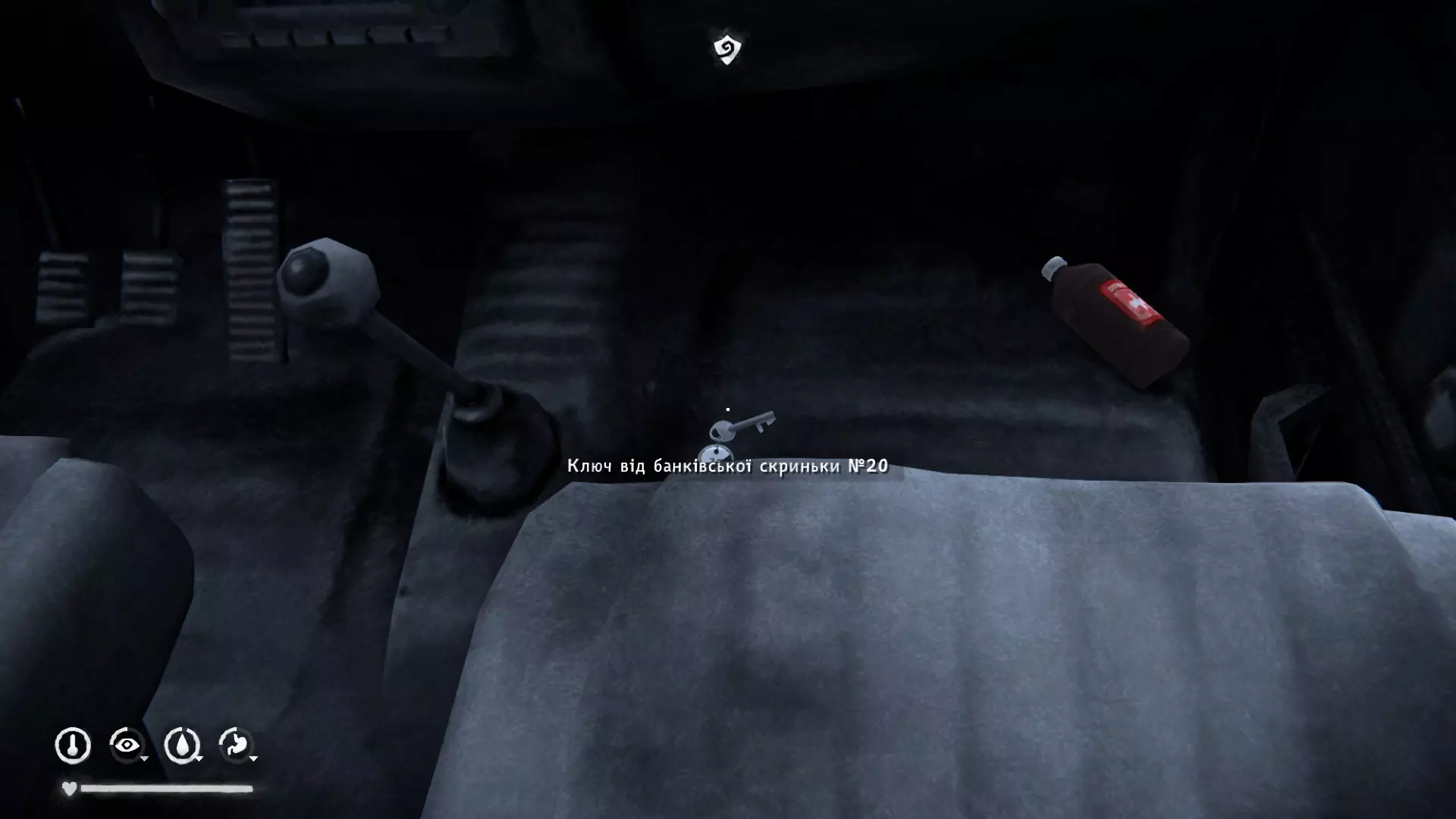 第20号钥匙位于皮卡车的地板上,在加油站处左转,旁边会有卫生间。里面有放大镜,现金2份。