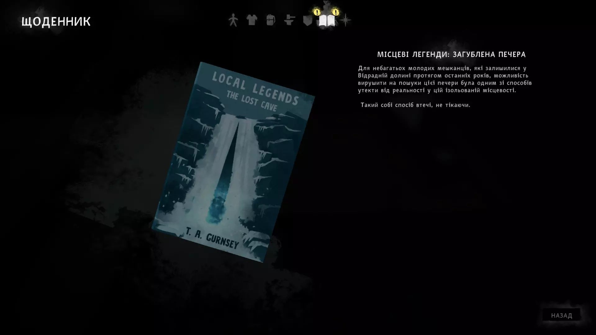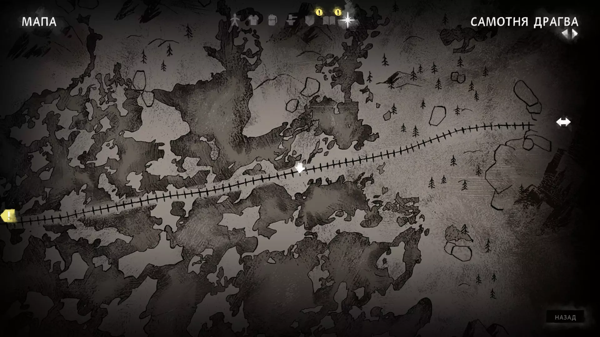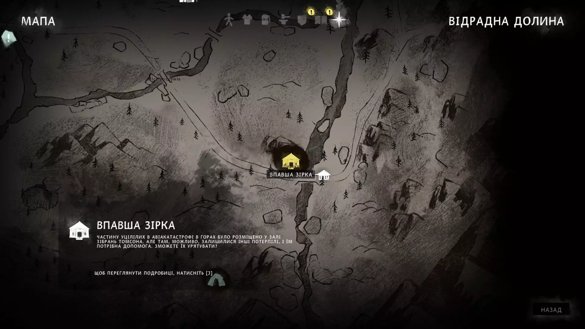 挑战大师。 完成所有试炼。 绝望救援——只需要了解地点之间的转换。 战利品,第一部分——简短且简单的试炼。 战利品,第二部分——无聊的试炼,需要不断追着熊跑。 白霜——可能会在寻找步枪时遇到困难,除此之外很简单。 游牧民——无聊的挑战,玩法包括在特定地点跳过3天。完成这个挑战你可以获得成就【Пацифіст】和【Тихий мисливець】,因为与狼的冲突几乎没有,而且游戏的大部分内容你都在跳过时间,所以为什么不直接获得两个成就呢? 档案管理员--- 死亡之梦--- Escape the darkwalker---进行中