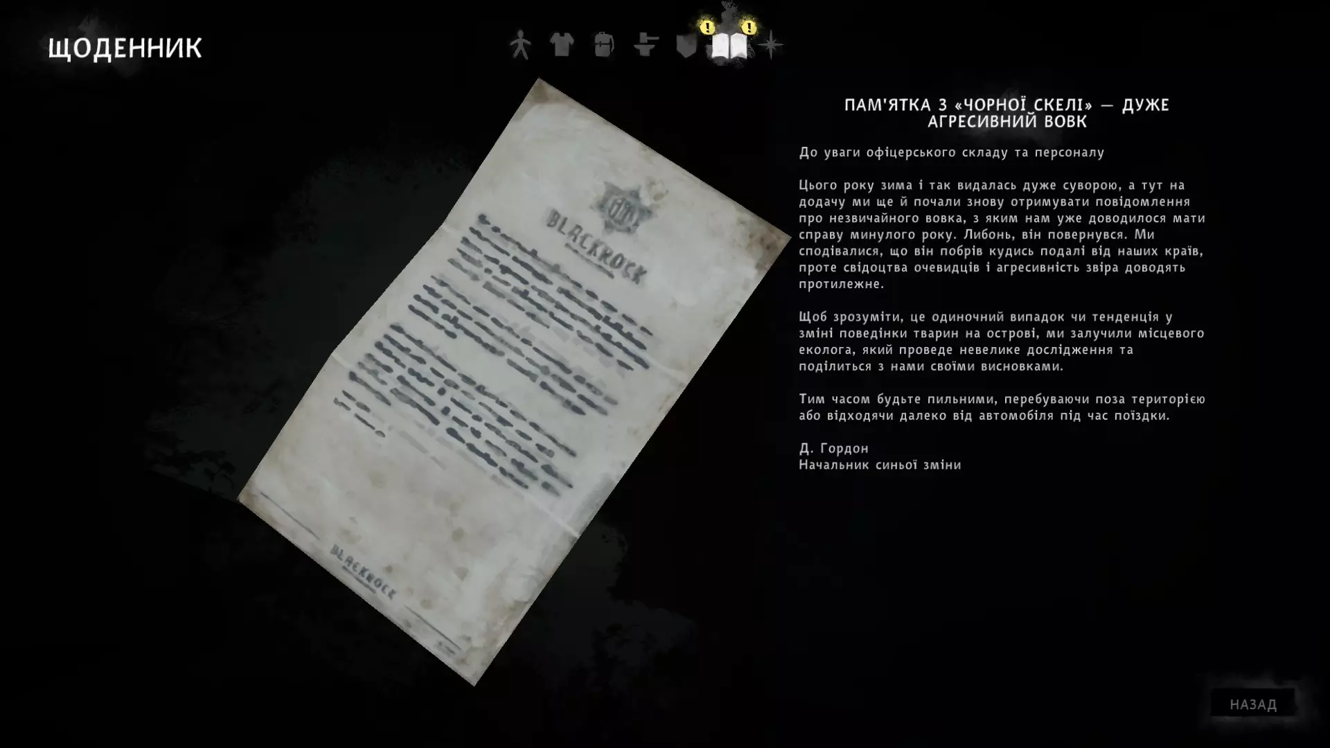 艰难时期。 完成任务【黑石礁石板】。 要完成此任务,需找到3份笔记,然后按照地图上的标记行动。 第一份笔记位于剧情中你会进入的医务室里。