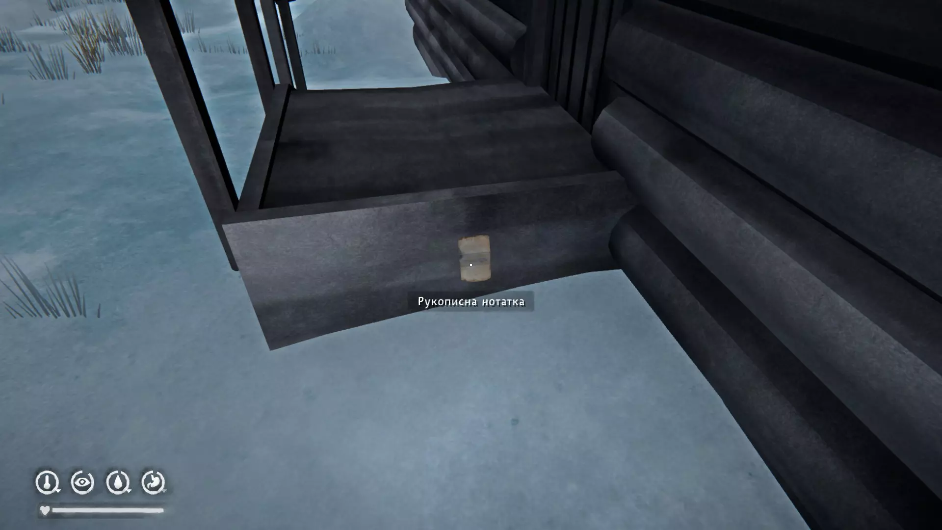 铁路 5) 在猎人小屋的台阶下。就在这栋小屋旁边。里面有战利品、书、以及依靠极光运行的地堡的密码。