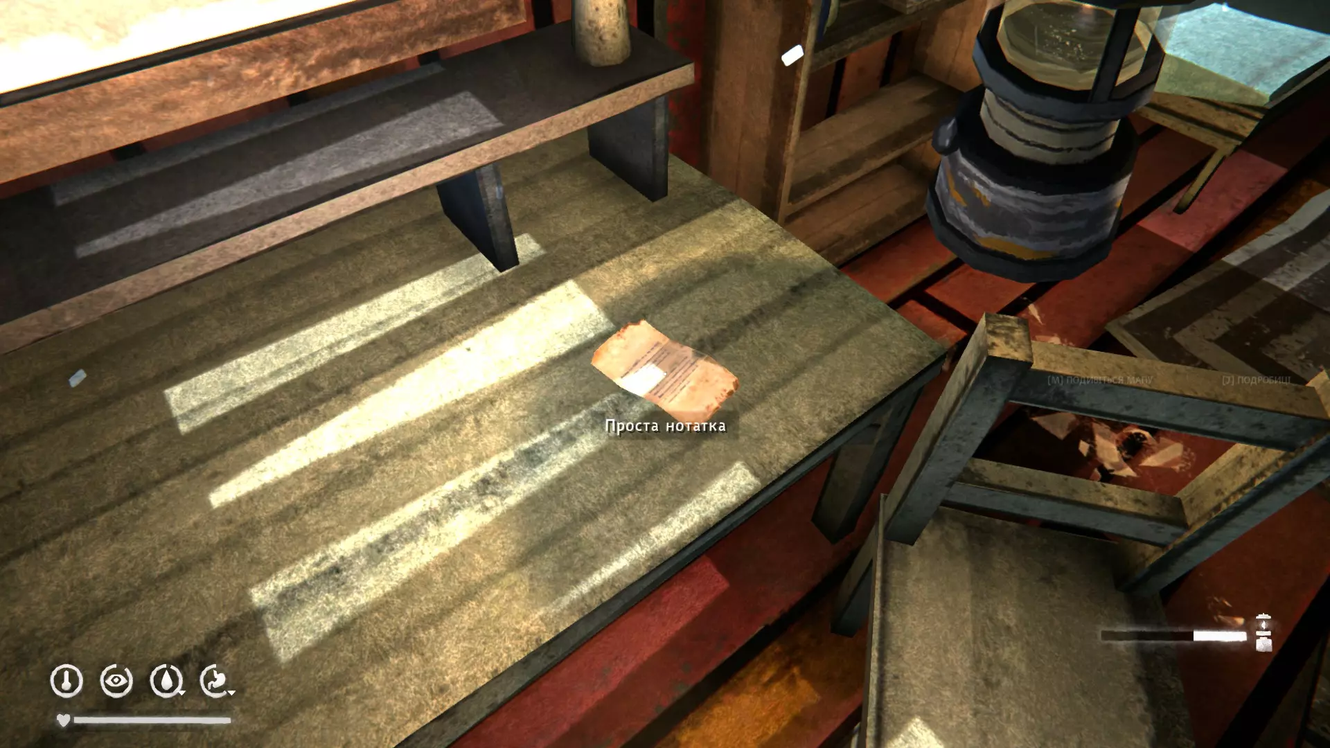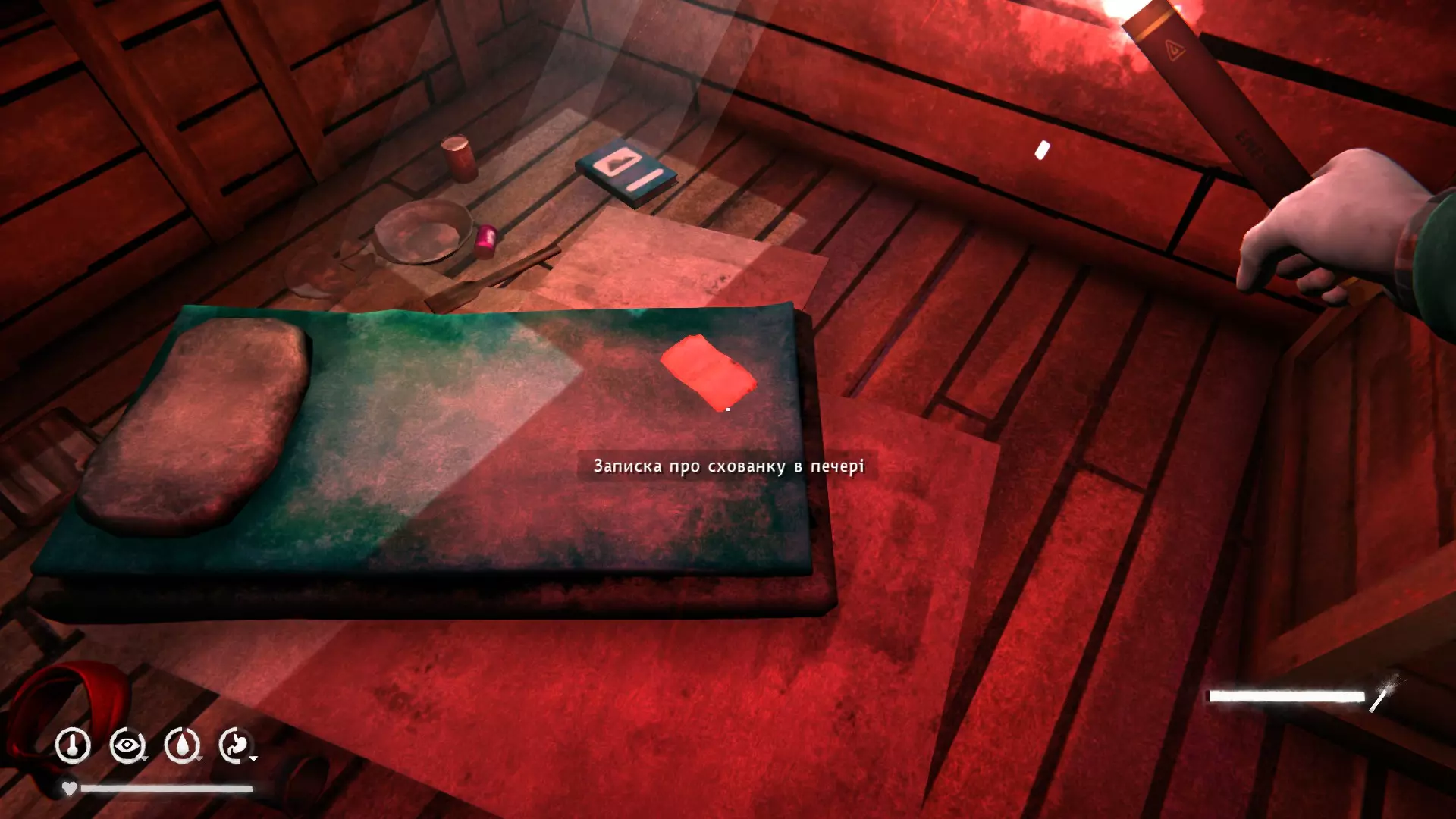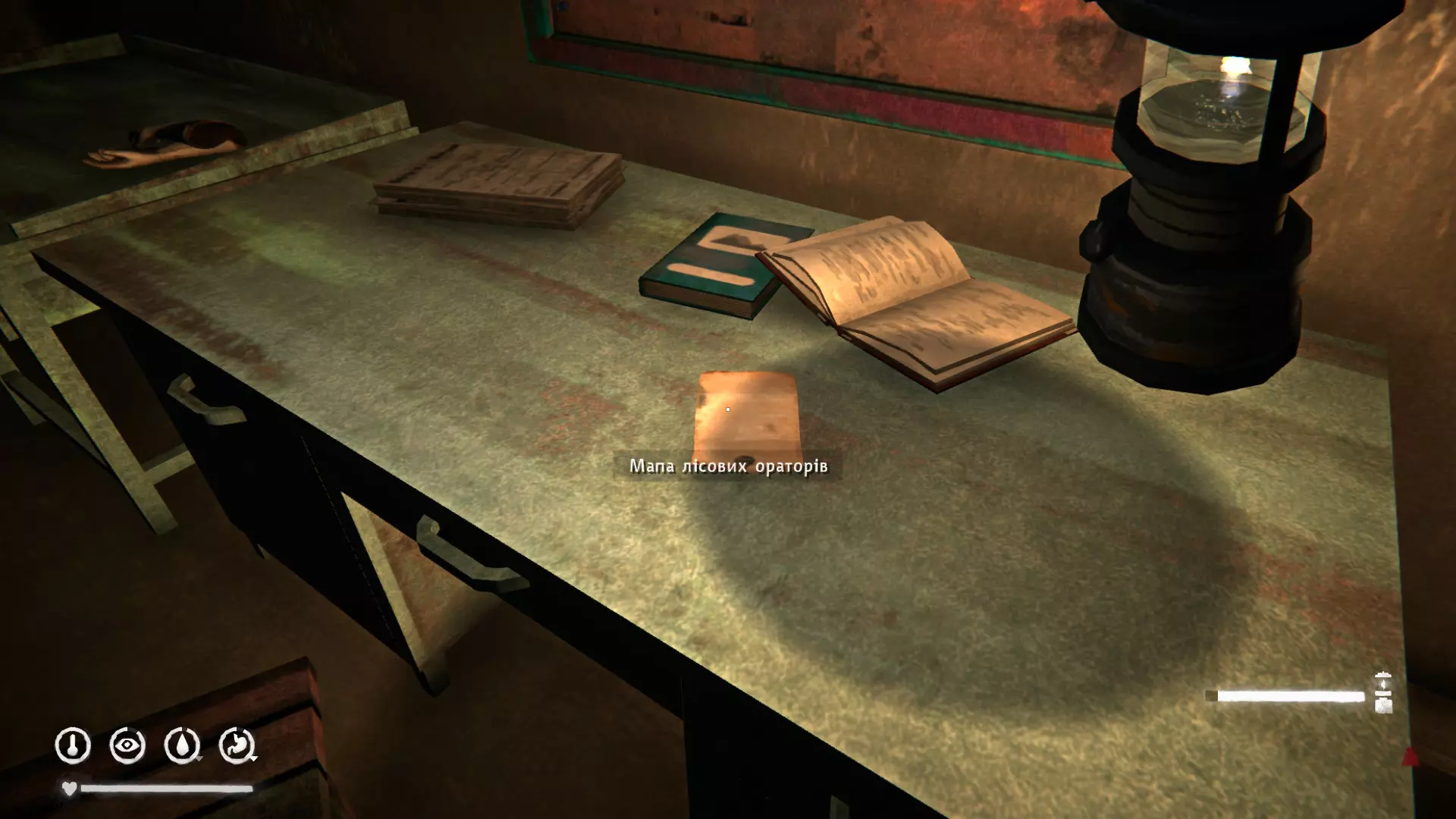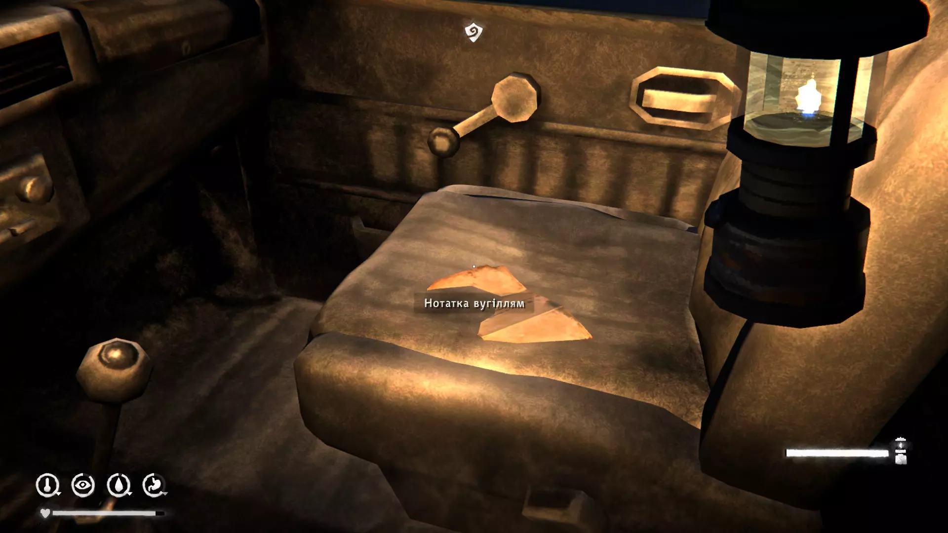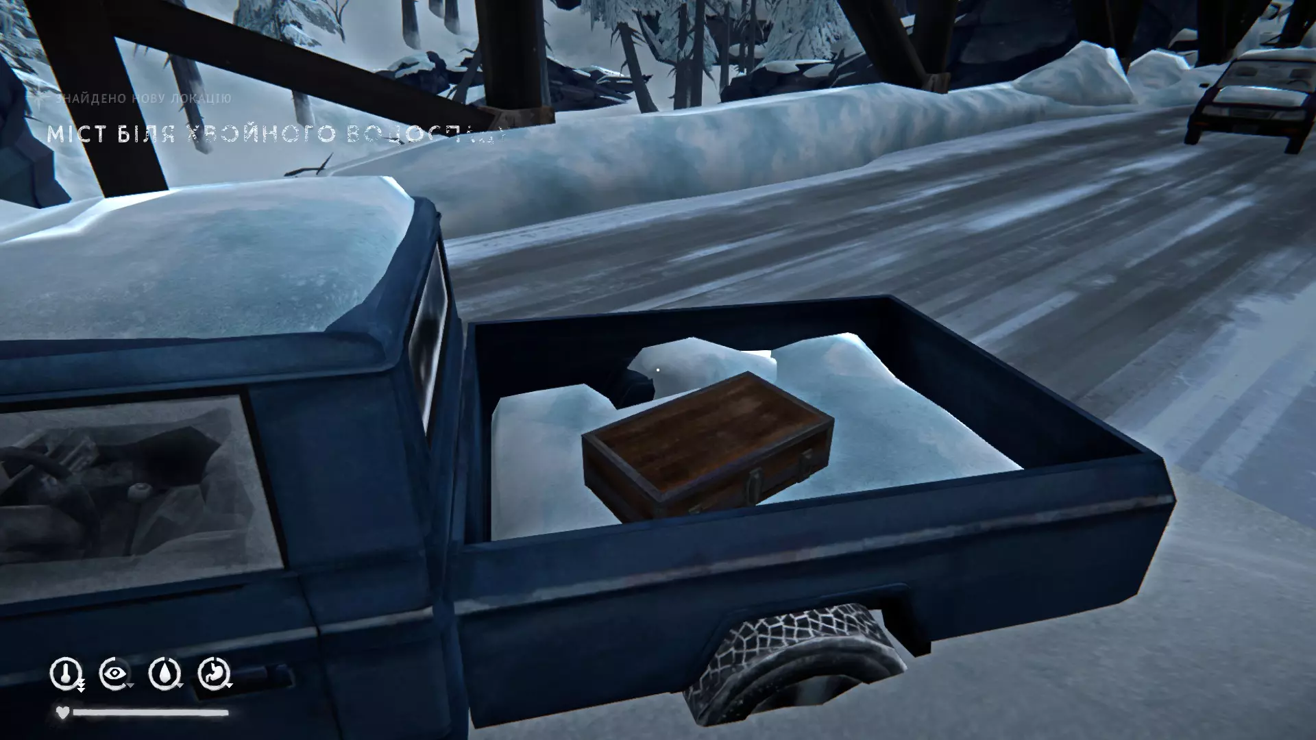 在断桥旁的皮卡车里(沿着铁路一直走就能看到,不会错过)。里面有绘图仪、打火机、巴拉克拉法帽、谷物棒。
