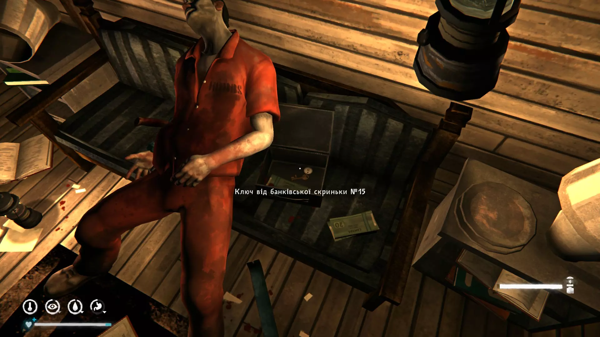 别忘记了。 打开米尔顿银行的所有储物柜。 为此你需要这些储物柜的钥匙,即7号、13号、15号、20号钥匙。 7号钥匙位于其中一间中央房屋的床下。里面有现金、2枚信号火箭。