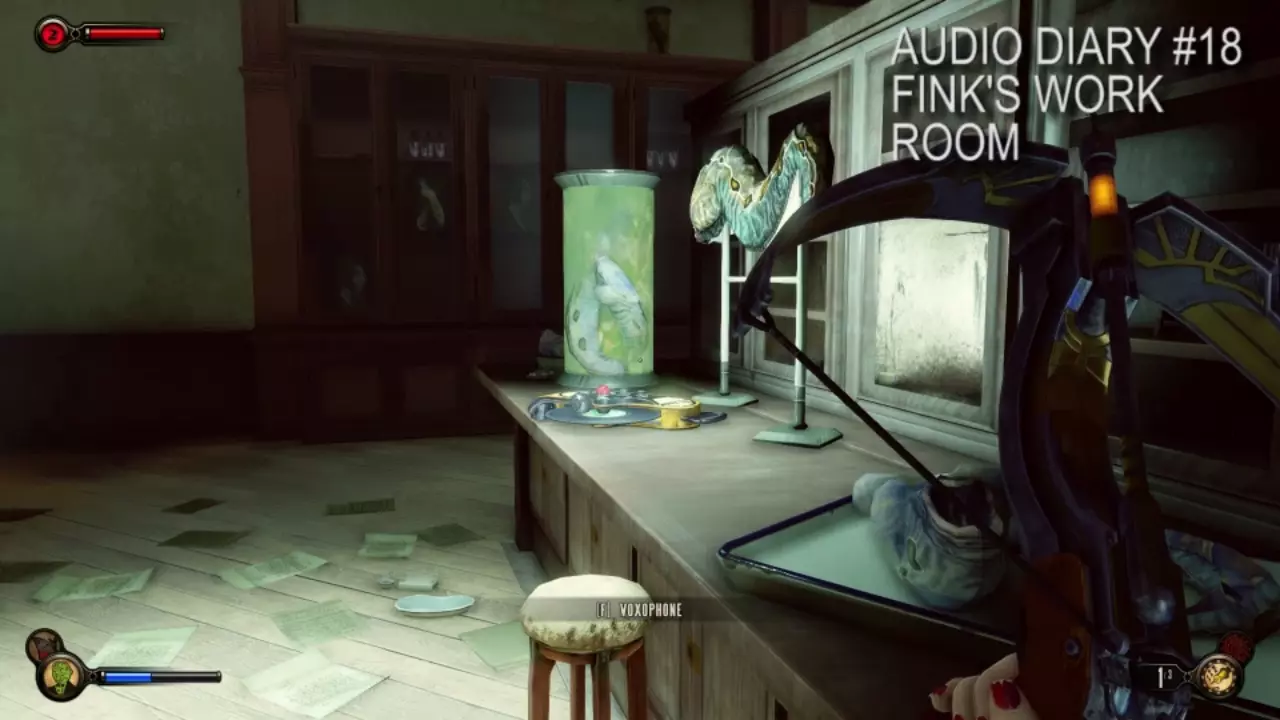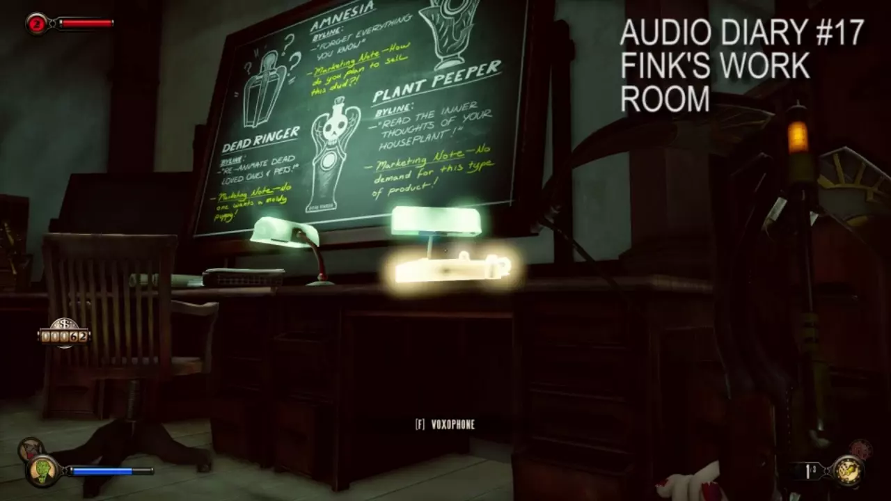 第25号日记位于黑板旁的密室中,内容提及了对《生化奇兵》初代角色所进行的实验。